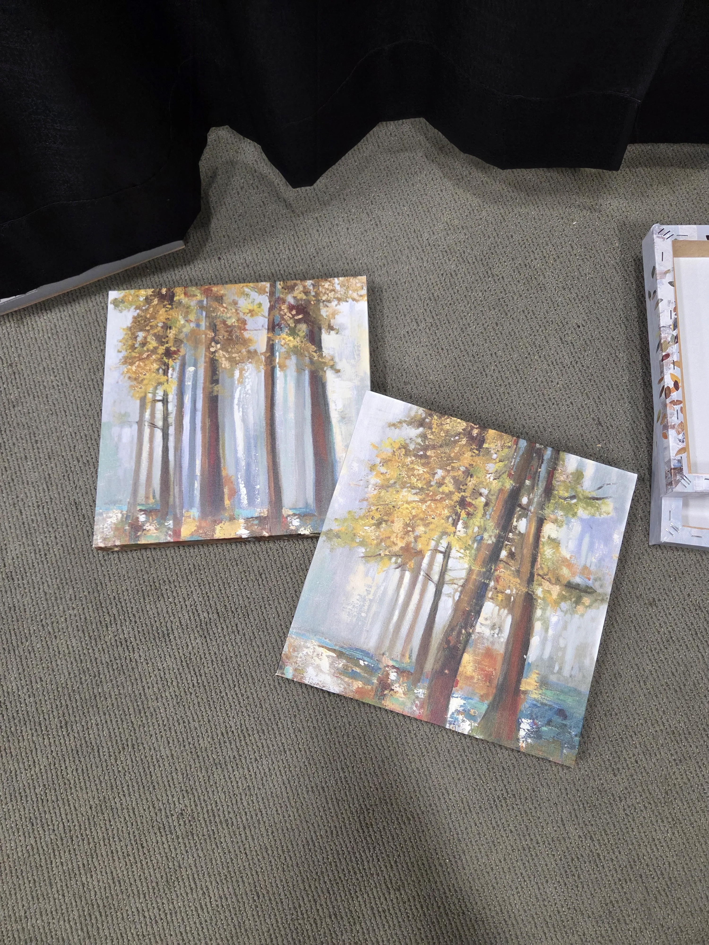 Nice nature scene in a painterly style. They are square prints on stretched canvas. Preference is to quick pickup at 500 Carlingview drive Toronto during monday to friday 830am to 430pm. Would deliver for select iso items.