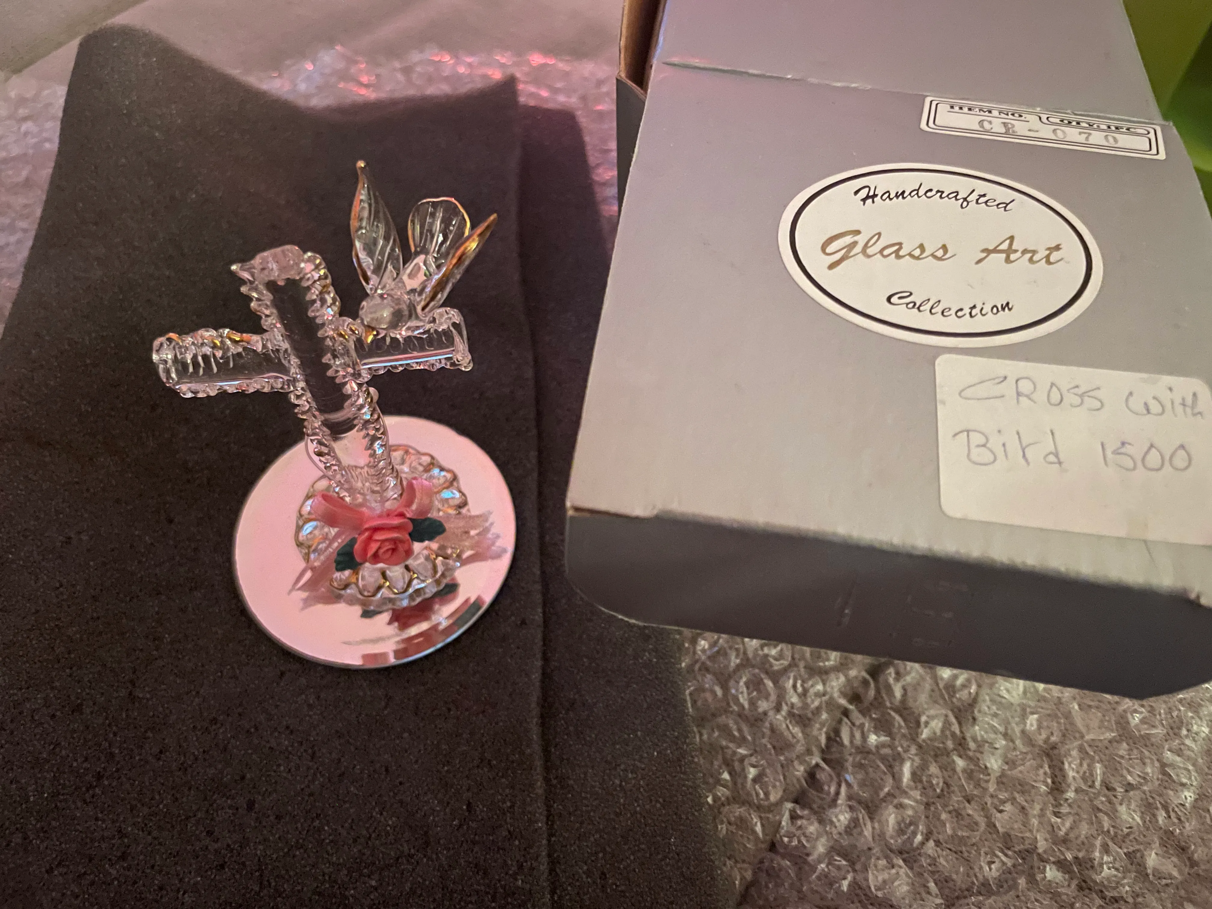 Cross with bird. Glass art handcrafted collection. Brand new in box.