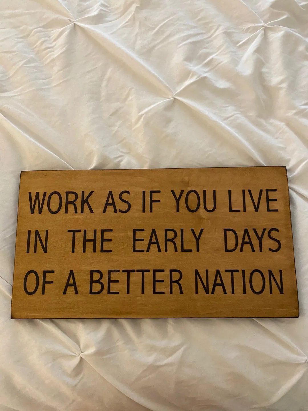 This is a quote by Alasdair Grey, custom on wood to reflect something I saw in a beautiful pub in Scotland years ago.