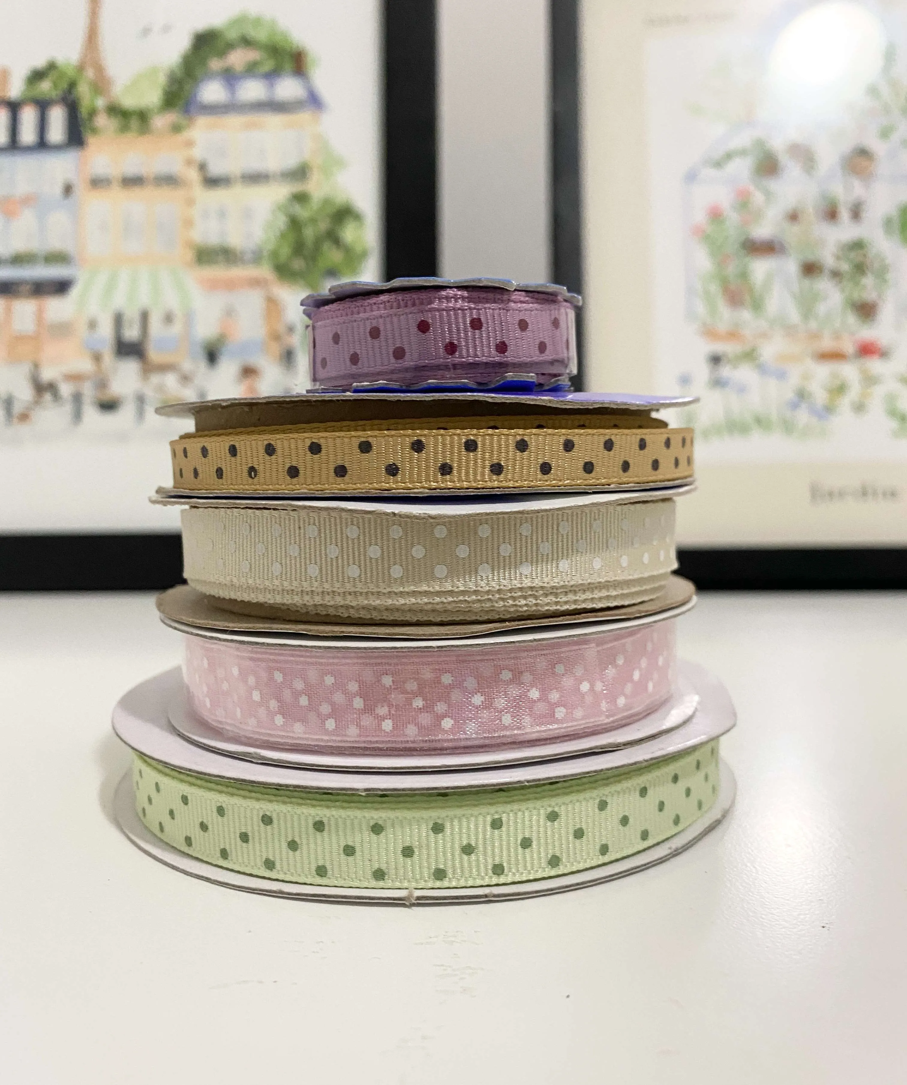 I have leftover pretty dotted ribbon that I no longer need and I don't want it to go to waste!