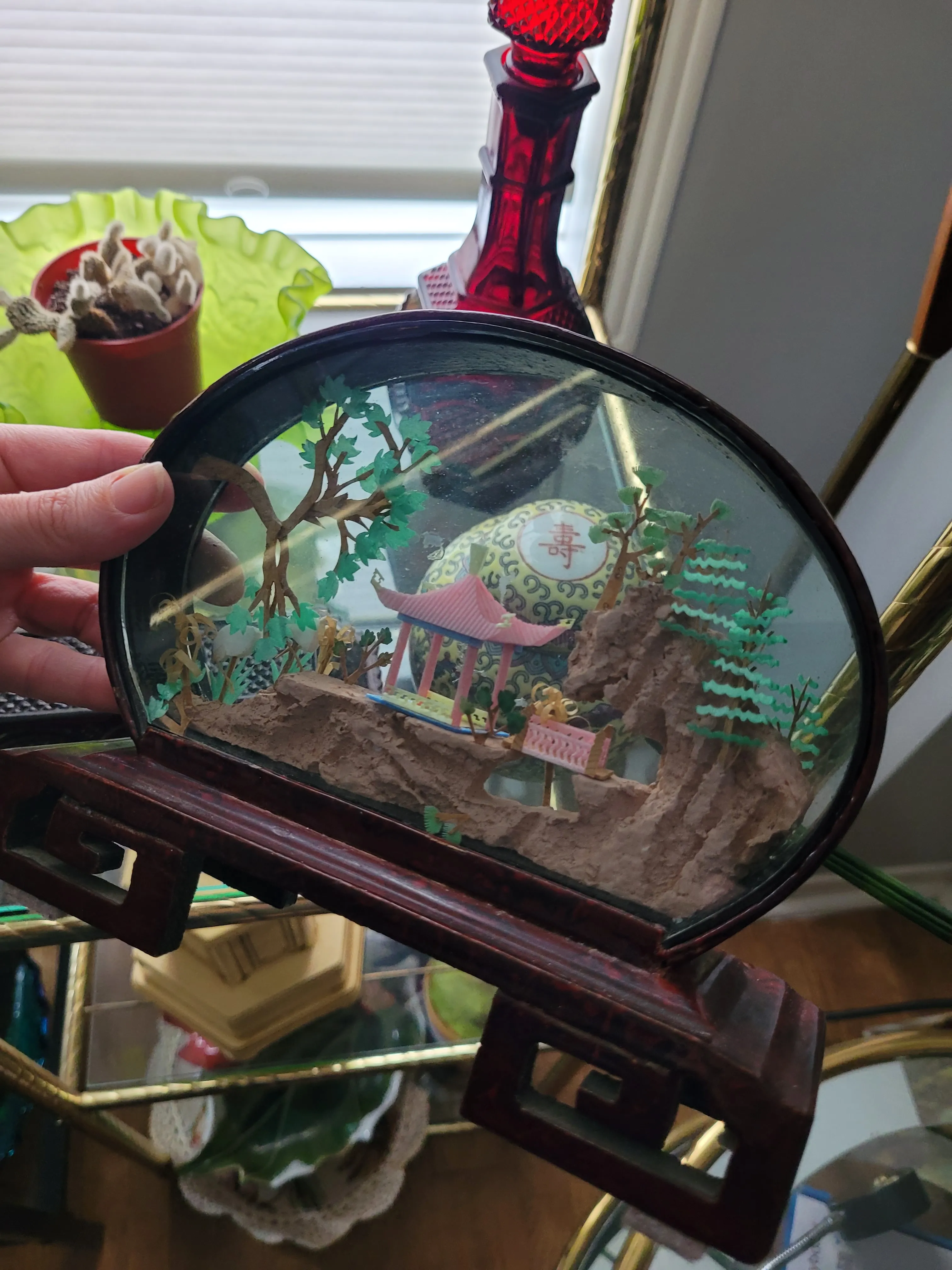 Really cool double sided art piece. I believe to be cut paper and carved cork. Pickup By appointment as i have to bring it from home to my office for pickup. Can meet during 8 30 to 430 most weekdays