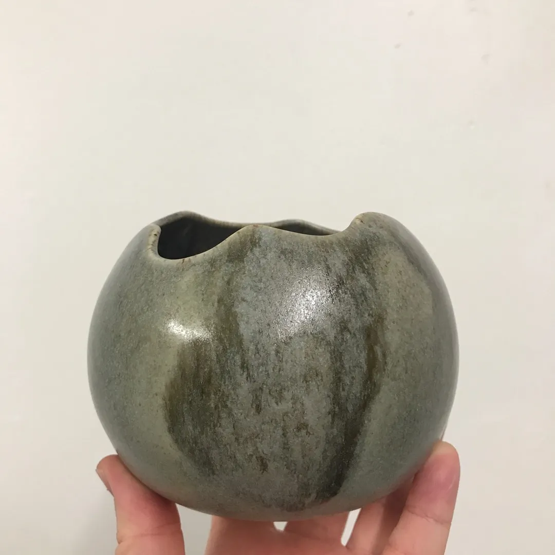 New handmade ceramic vase or planter (no drainage holes). Major flaws in the glaze. Small size, around 5 inches wide and 3.5 inches high.
