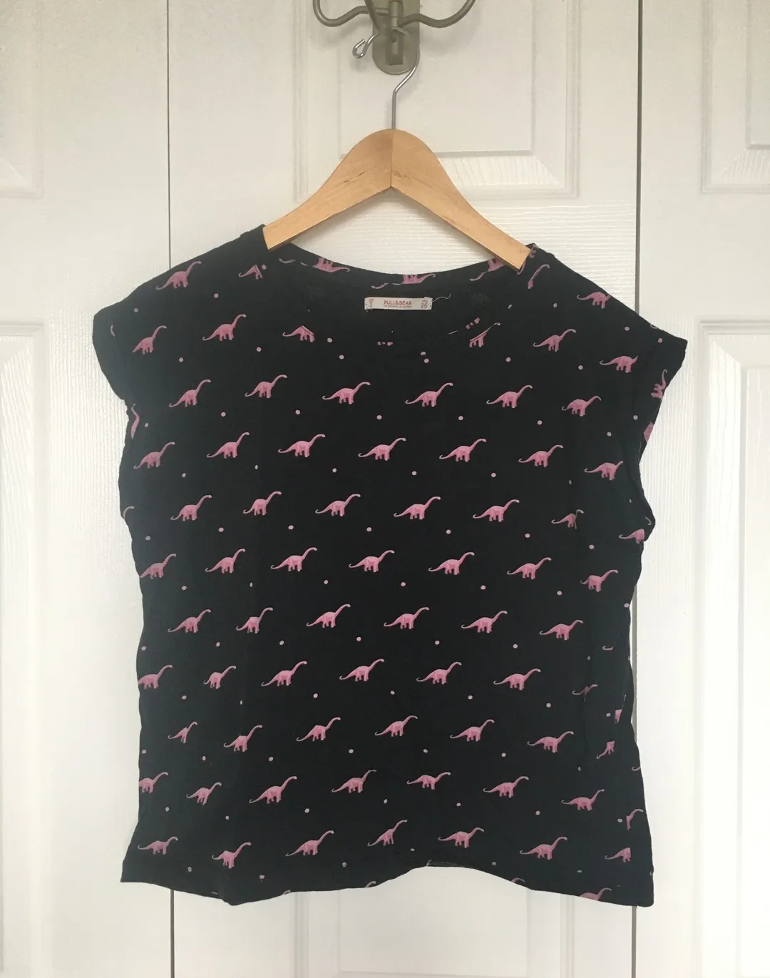 Cute cotton t-shirt. Size small but could fit a medium because of its cut.