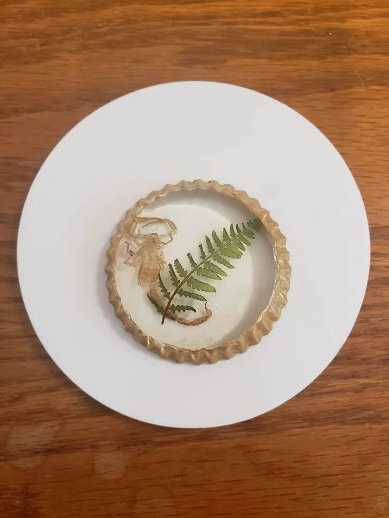 Glossy 4" resin discs with gold, handpressed flowers, and ethical scorpion molt. Place on your walls anywhere inside, or see if the scorpion will glow under UV light 🤔