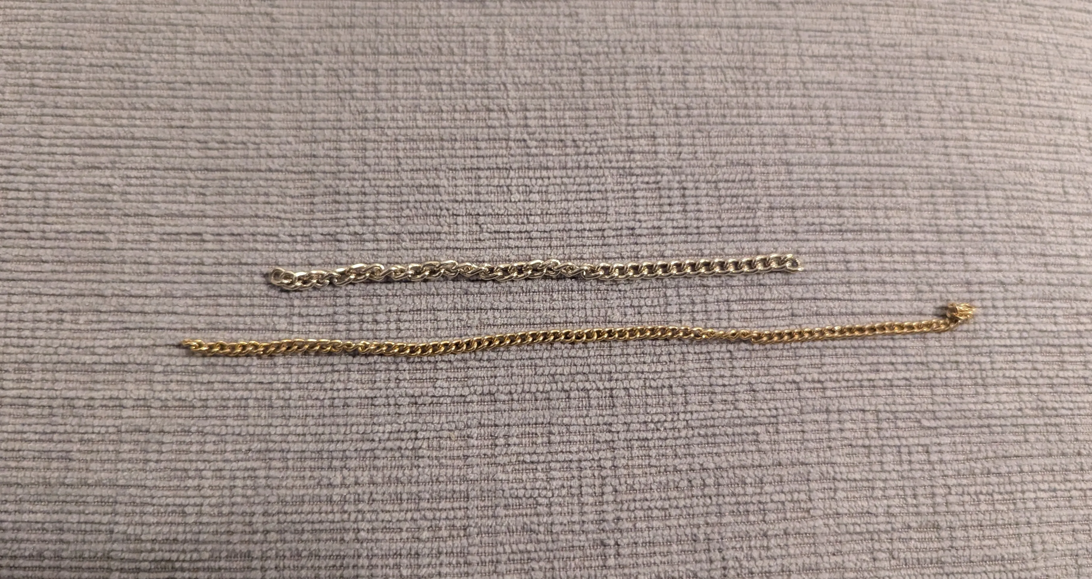Two chains, one silver, one gold. Both are curb chains. Great for jewellery making or repair.
