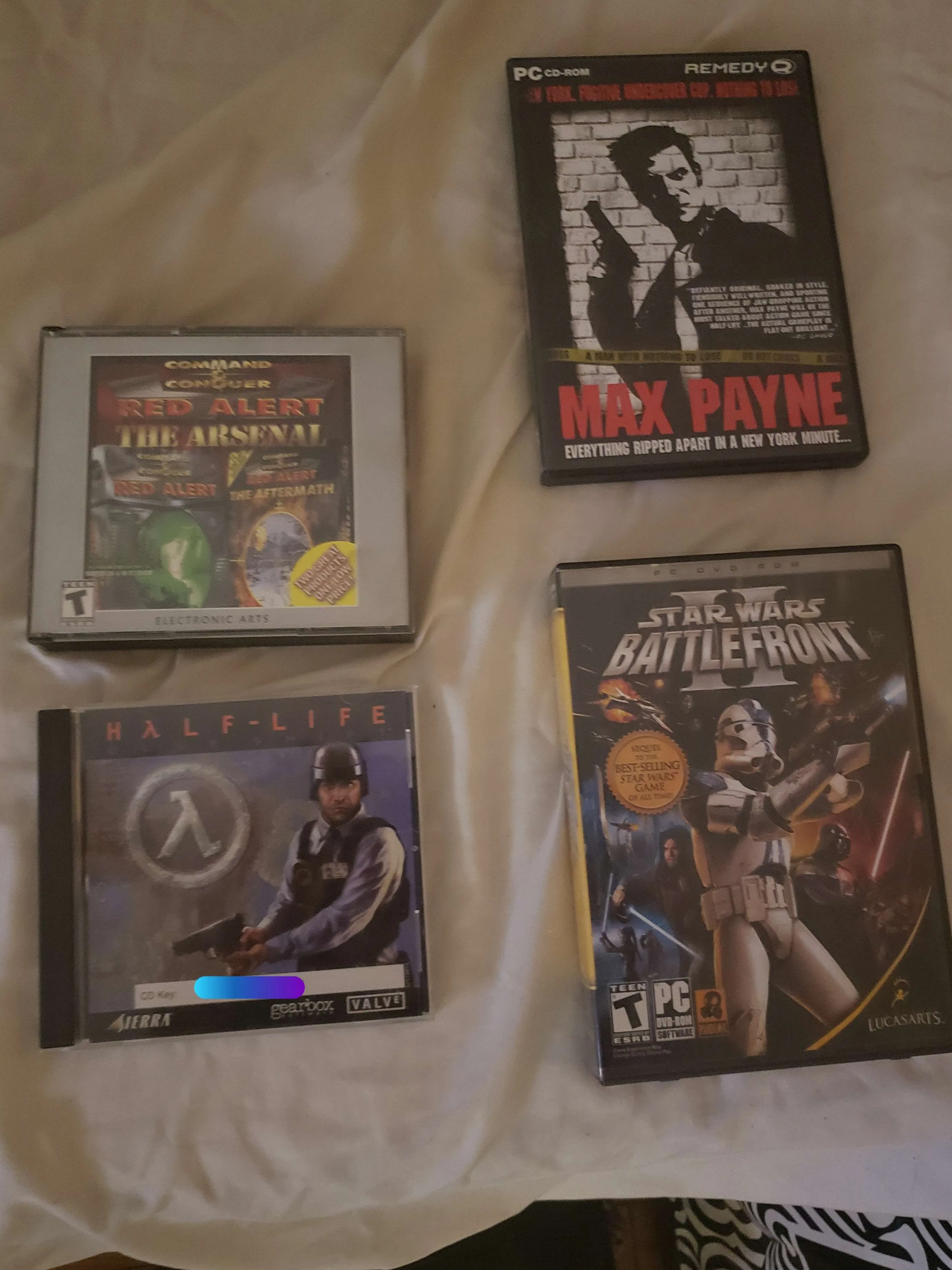 Hey Palz! Still got a desktop with a CD/DVD drive kicking around? I have a bunch of retro PC games for trade! All come with keys (although the keys have not been tested on modern platforms such as Battle.net or Steam since testing them requires redeeming them) and manuals (except Max Payne) and all discs are in good condition!