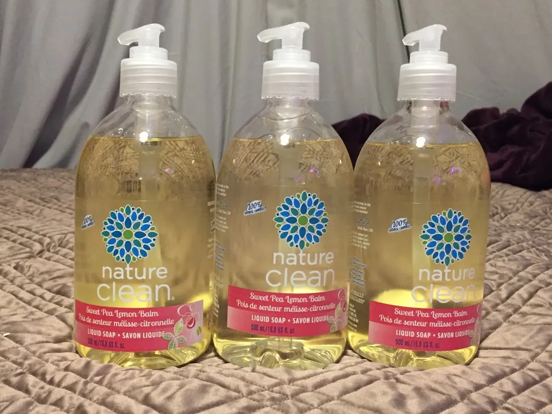 Sweet pea lemon balm scented liquid soap, 3 x 500 mL. New.