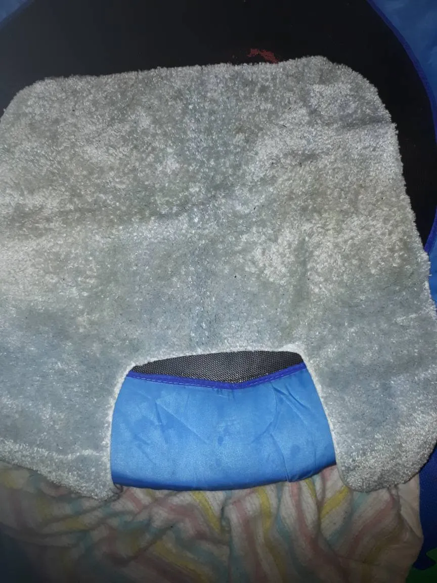 Soft baby blue bath mat for around the toilet, I had big dreams for a comfy matchy bathroom and then discovered the door wouldn't open with one in there and so it has been sitting in a closet ever since...