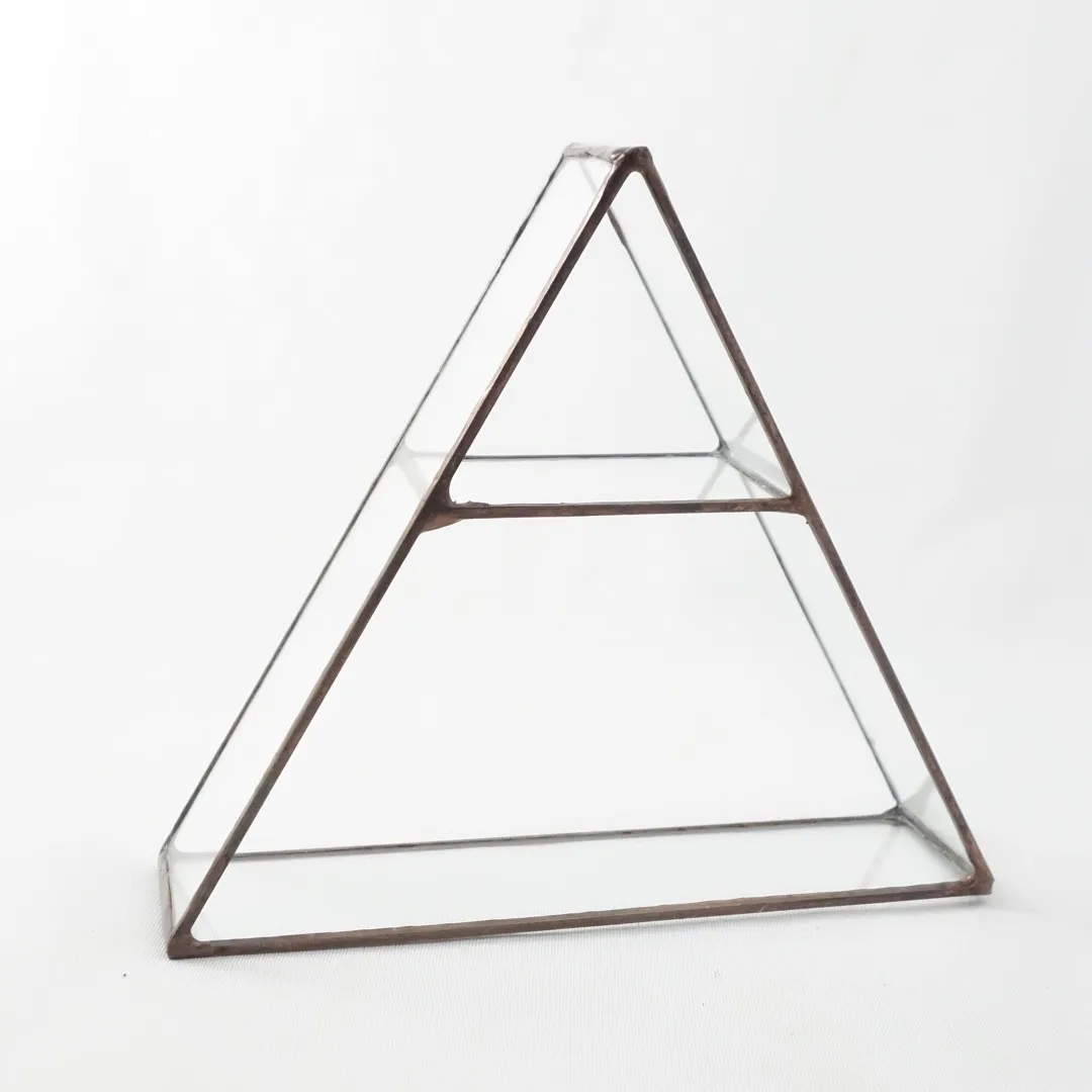 Glass triangle shelf that can be used to display your jewelry, crystals, trinkets or any little treasures. They can be hung on the wall or placed on a flat surface. Turn them around or hang them upside down.They look great in groupings of 2 or 3.