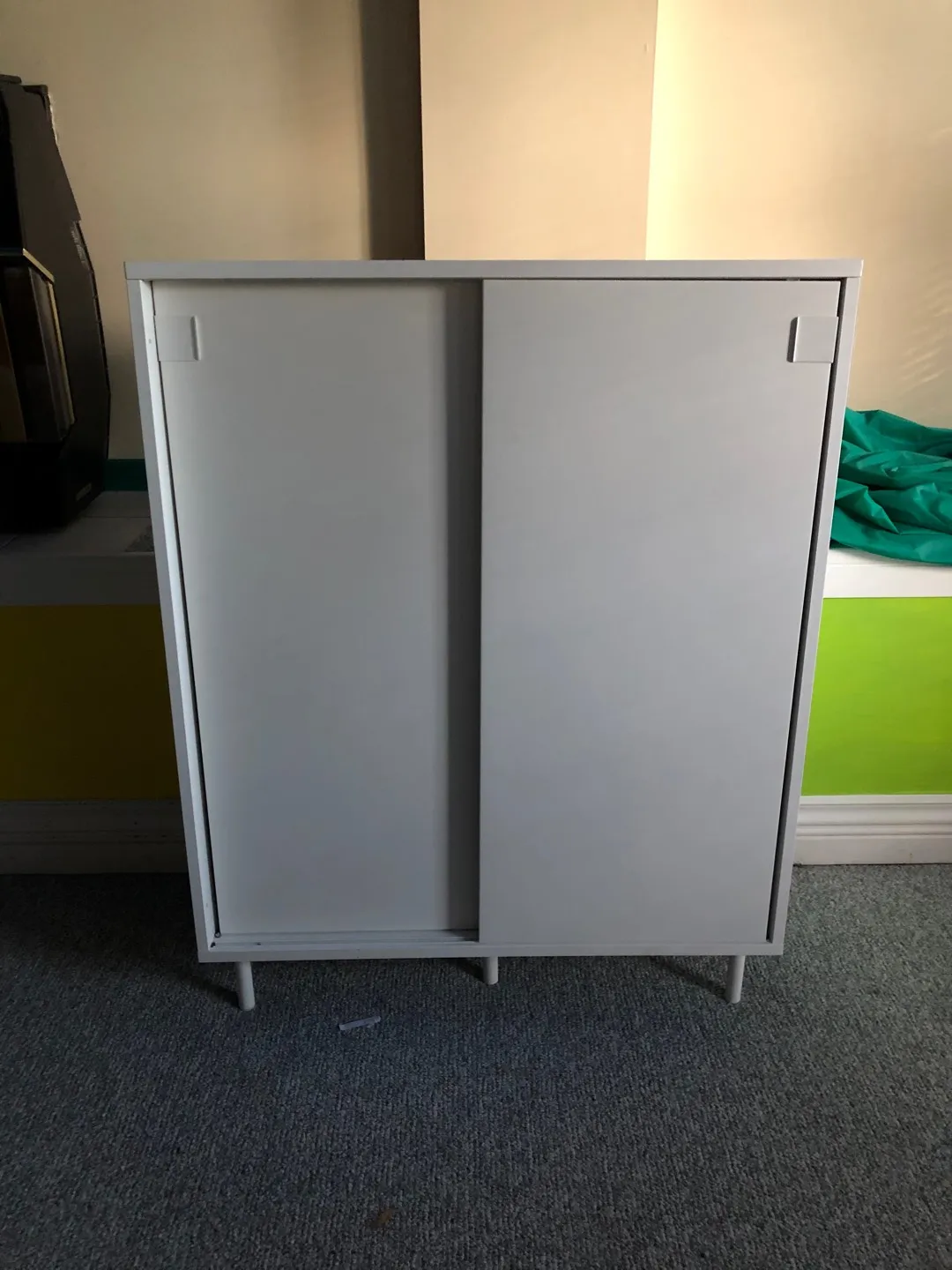 Lean against the wall with 3 legs in the front Good condition Adjustable shelf spacing