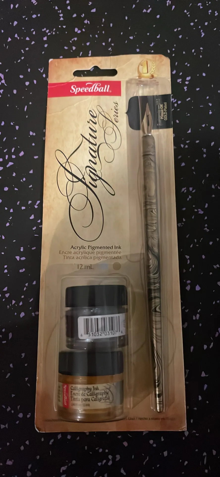 Calligraphy pen gold-plated with acrylic pigmented ink gold/silver. New in package
