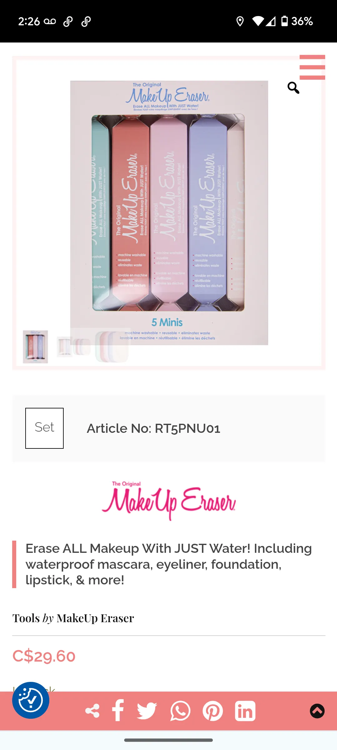 Set of 5 mini Makeup Erasers. Removes all makeup with just water. Machine washable, reusable, and eliminates waste. Great for removing waterproof mascara, eyeliner, foundation, lipstick, and more.