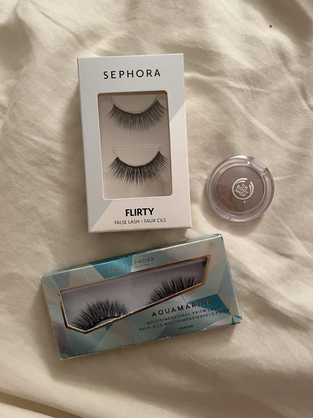 Gently used the eye lashes before (band is too big for me and only tried to put the lashes on once); Body Shop eyeshadow is extra and is a silvery brown hue :) BTZ is fine or something on my ISO