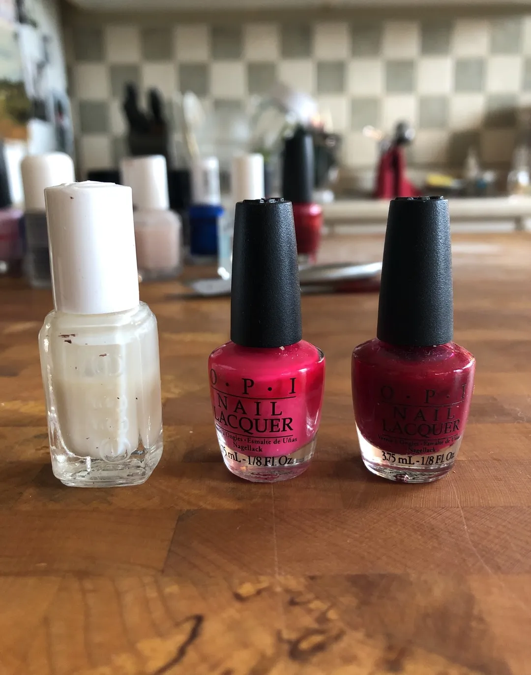 White - ESSIE rock candy, 3/4 full Pink - OPI, unused red -OPI, unused