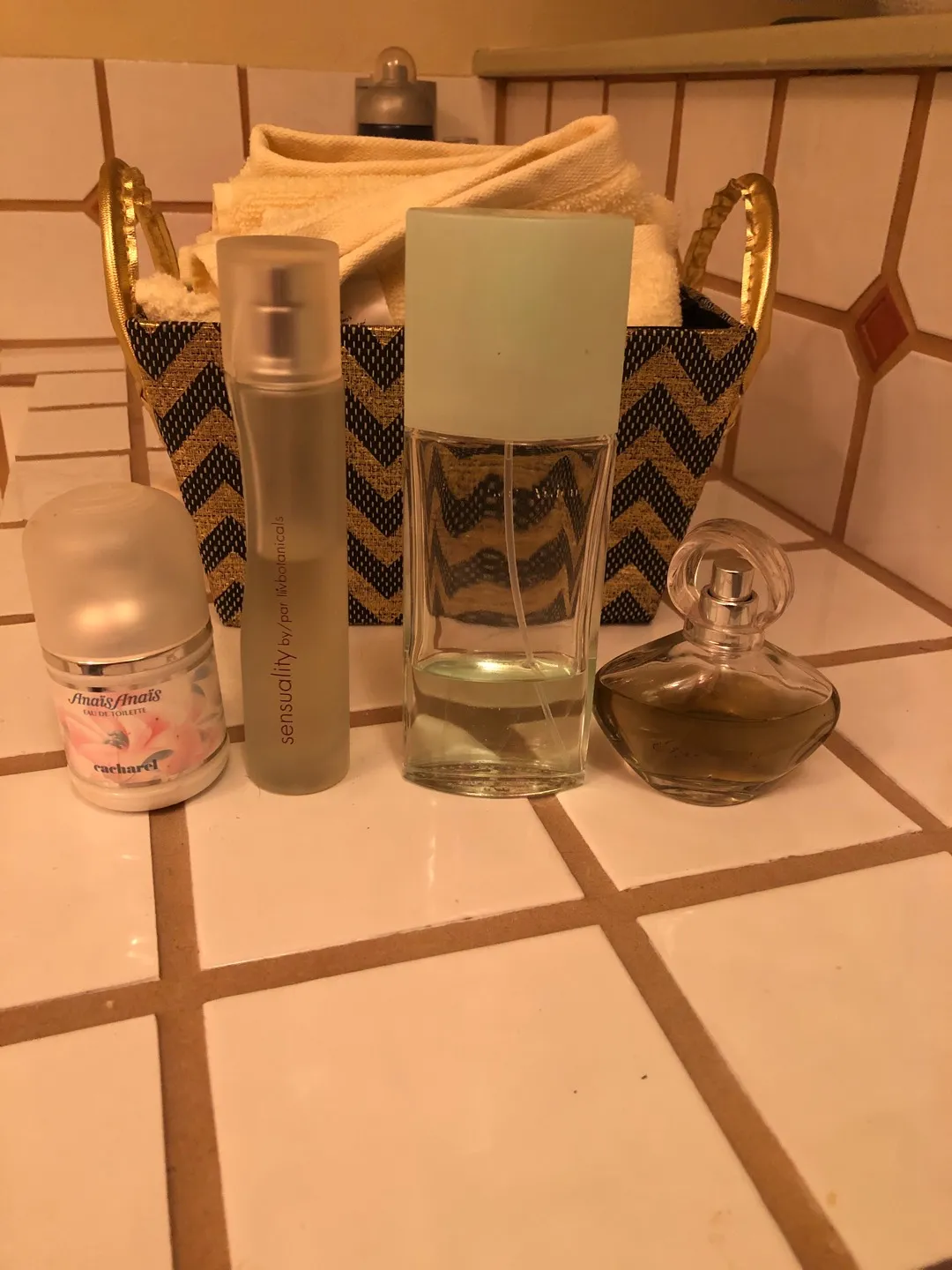 Various different ones, would prefer if somebody took all! The tall blue one is Elizabeth Arden