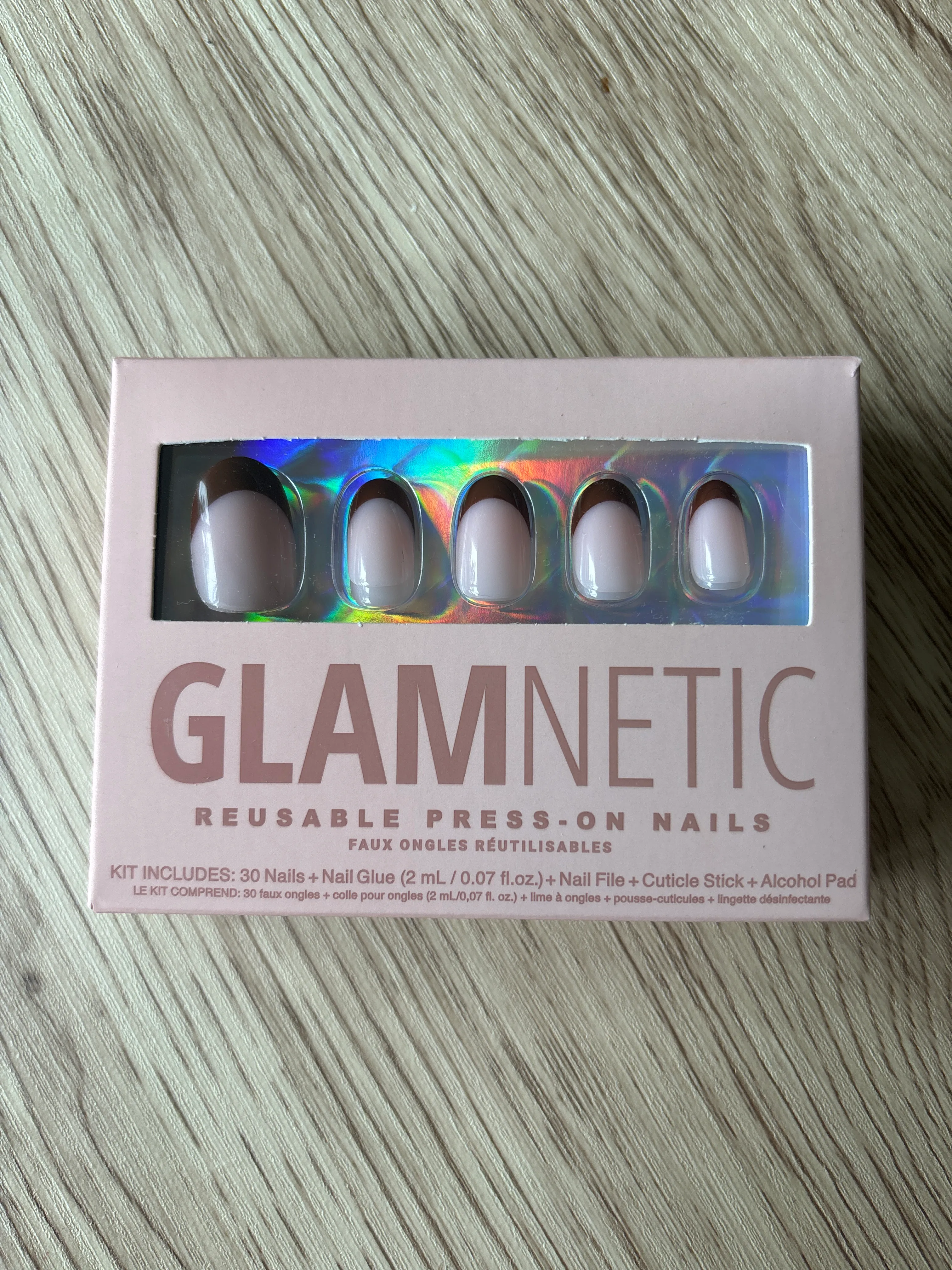 Glammetic press-on nails. Never used. Box has only been open to show the contents inside the box. Comes with mini glue brush, alcohol wipe, nail filer, additional nails to match your size, and press on stick. Style is “French Press”.