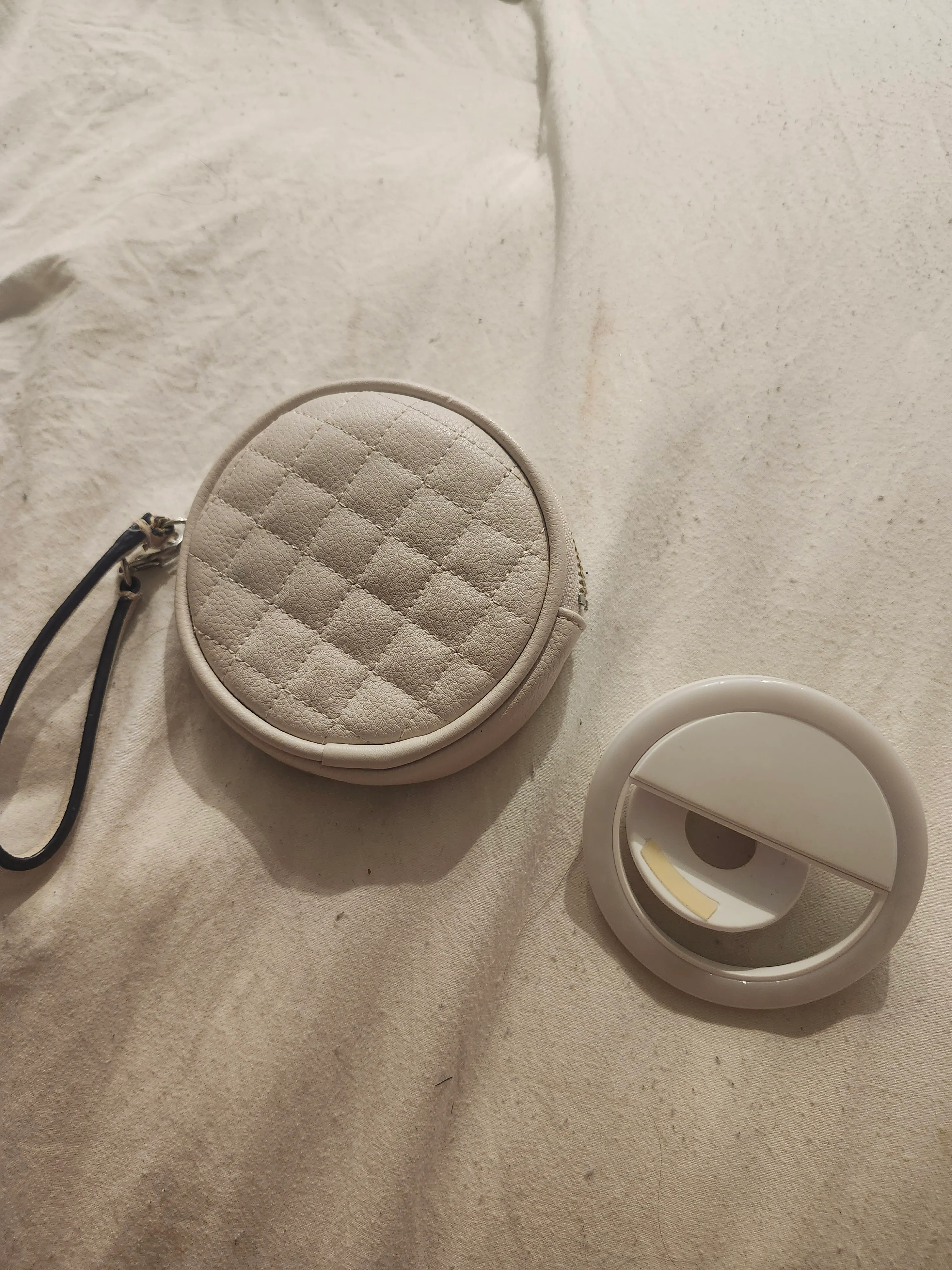 Selfie ring light, perfect for getting that extra bit of brightness for your photos and videos! It comes with a cute quilted case to keep it safe and easy to carry around