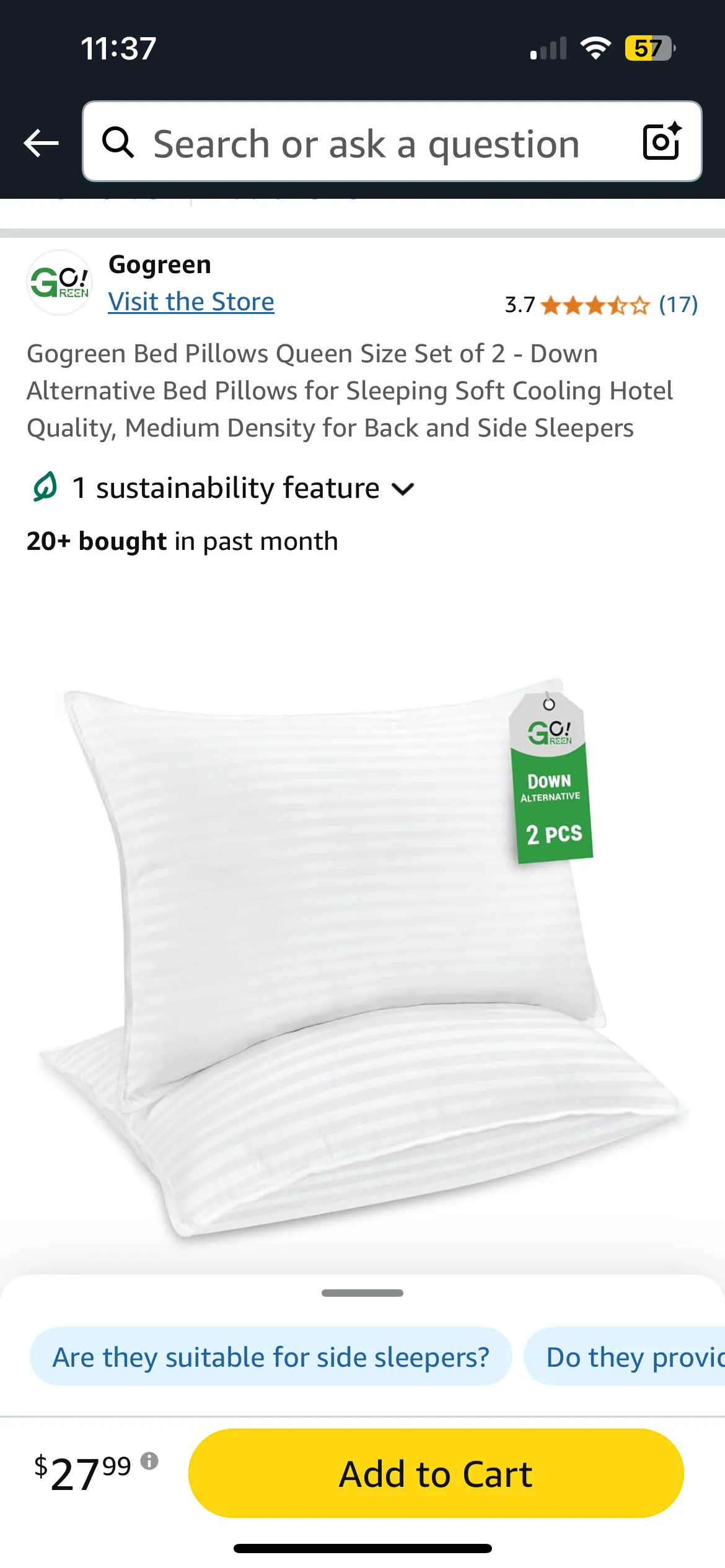 I have two of these pillows. They’re supposed to be eco-friendly down alternative pillows but I found them a little flat. According to the reviews on Amazon, they can be fluffed up. I did try fluffing one up and it worked. They’re brand new and haven’t been used. I already have a pillow but mine has been getting lumpy so I bought these but I don’t think I’ll need them.
