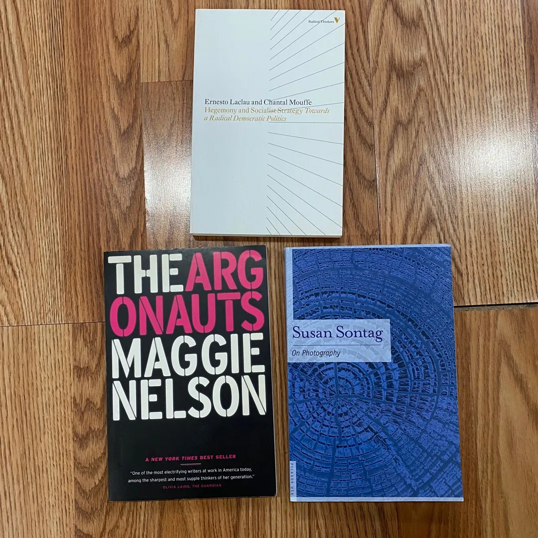 Hegemony and socialist strategy… - Laclau Mouffe The argonauts- Maggie Nelson On photography- Susan Sontag
