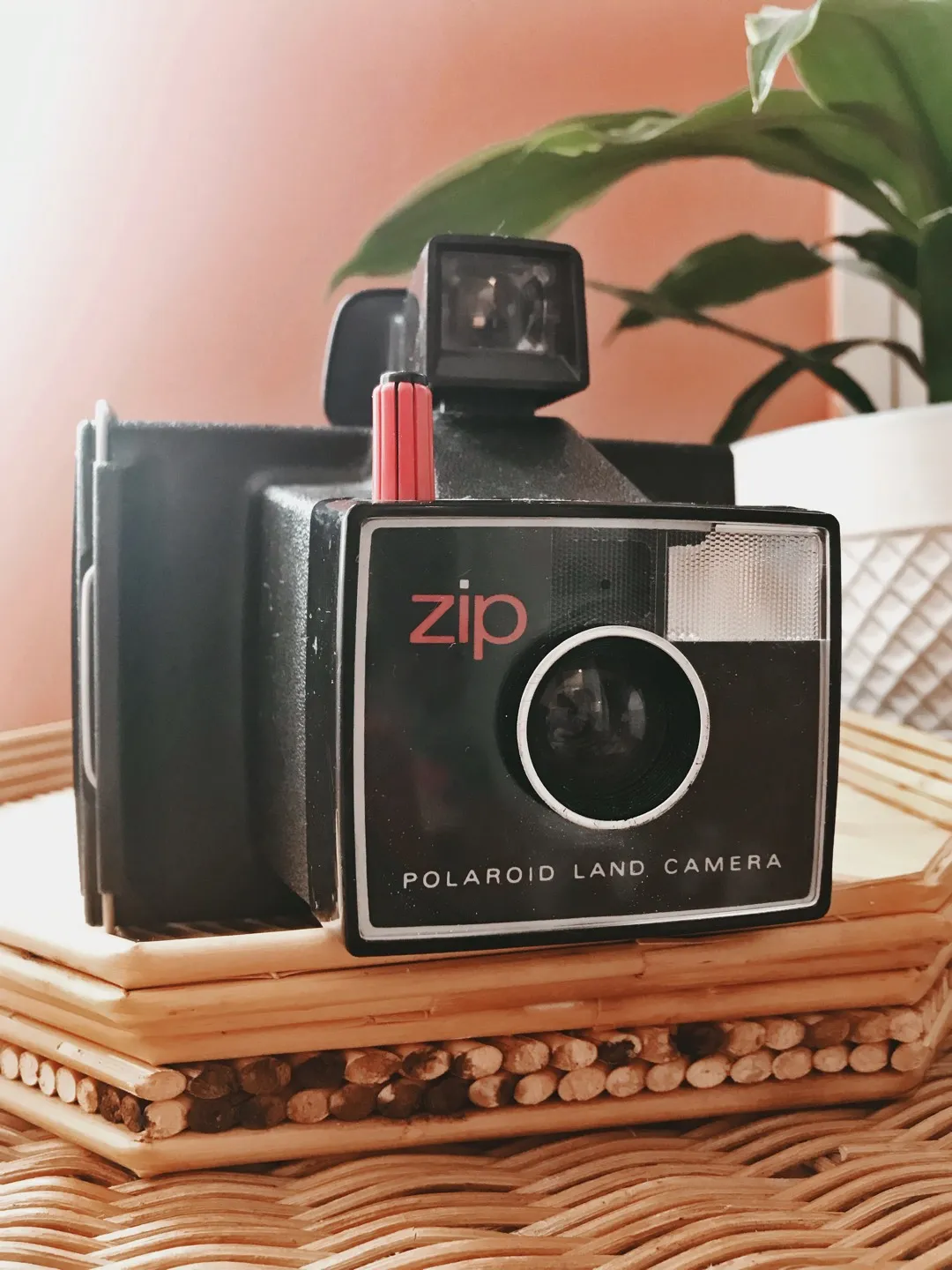 Polaroid Zip Instant Pack Film Land Camera Made in UK 1970s. Great vintage condition. Haven’t tried to use it but it’s a striking accent piece.