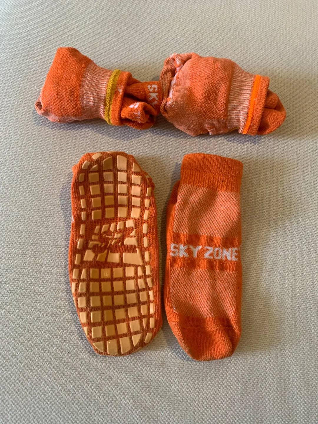 Socks with grips at the bottom which is ideal for the trampoline etc! All in good condition.