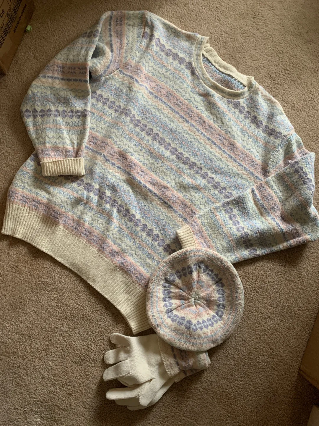 Received as a gift and never used Sweater doesn’t have tags but it fits like a large, also cute as an oversized fit!
