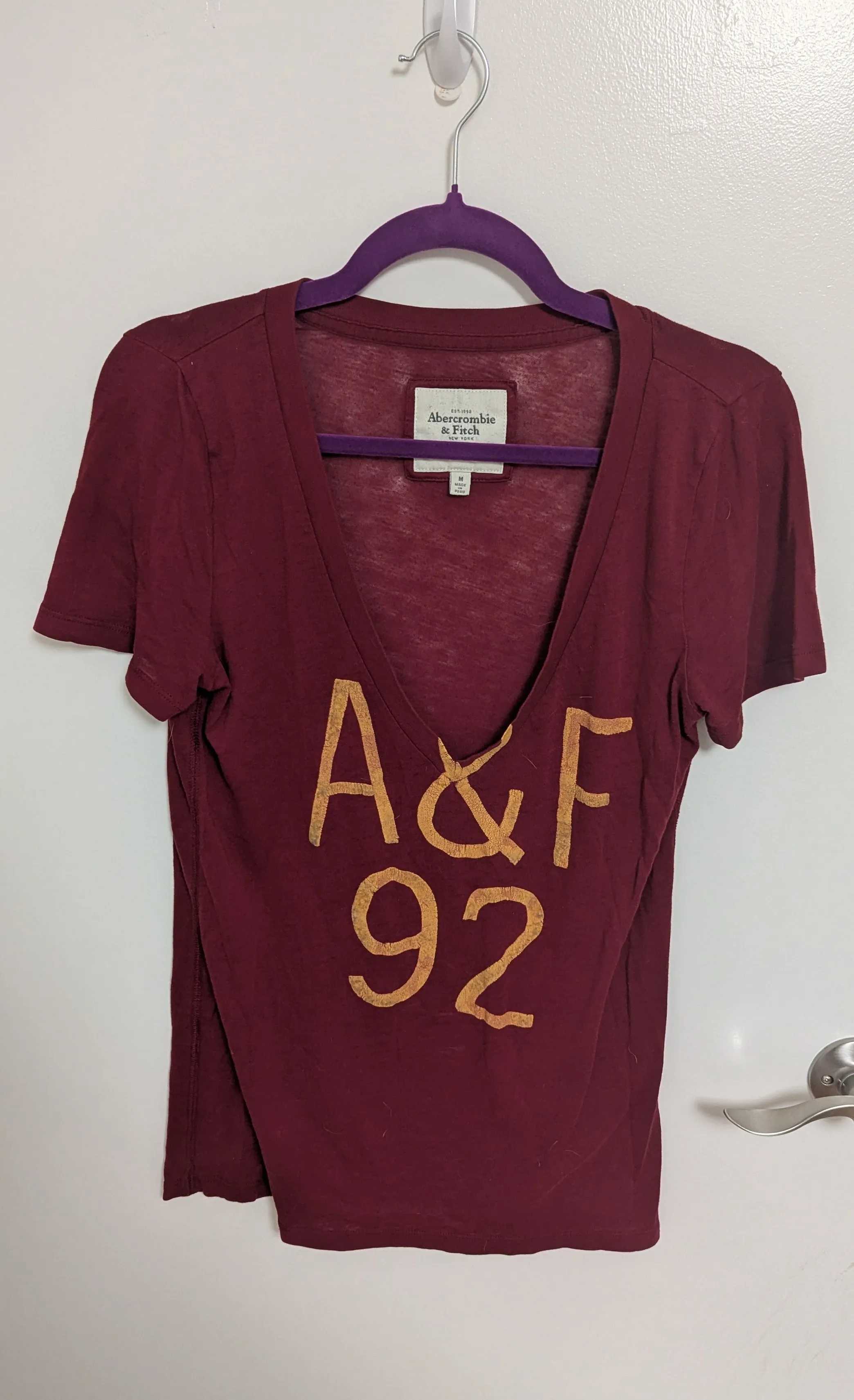 Abercrombie & Fitch Burgundy A&F 92 Tee - Women's Size Medium