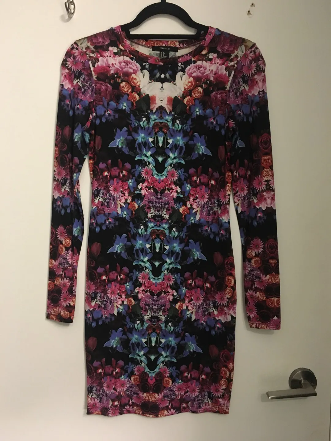 Abstract print dress from Forever 21. Size small. Only worn 1 time. Great condition. Stretch material -body fitting dress. Pick up at Distillery District. Accepting BTZ or items on my list!