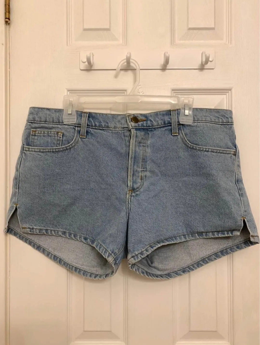 American apparel denim shorts/jean shorts, cuffed. Botton fly closure.