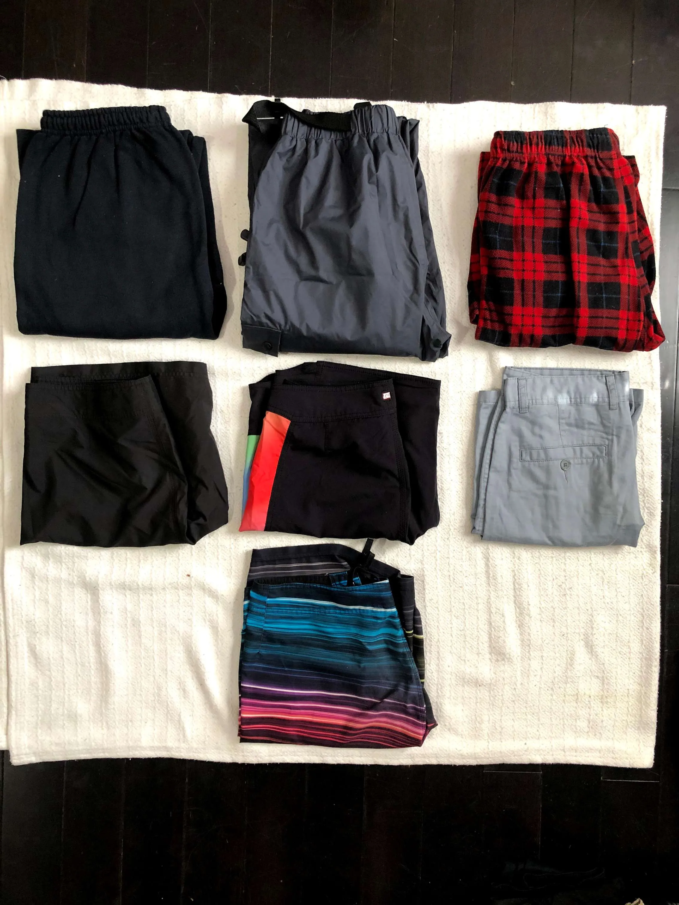 Assorted men's pants/shorts. These are the pantsiest and shortsiest pants and shorts you ever did saw!