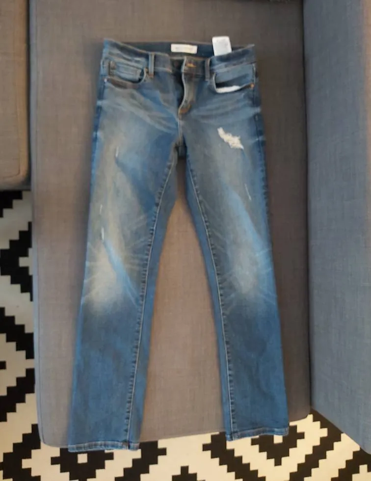 Size 25. Mid rise, slightly boot cut. In good used condition