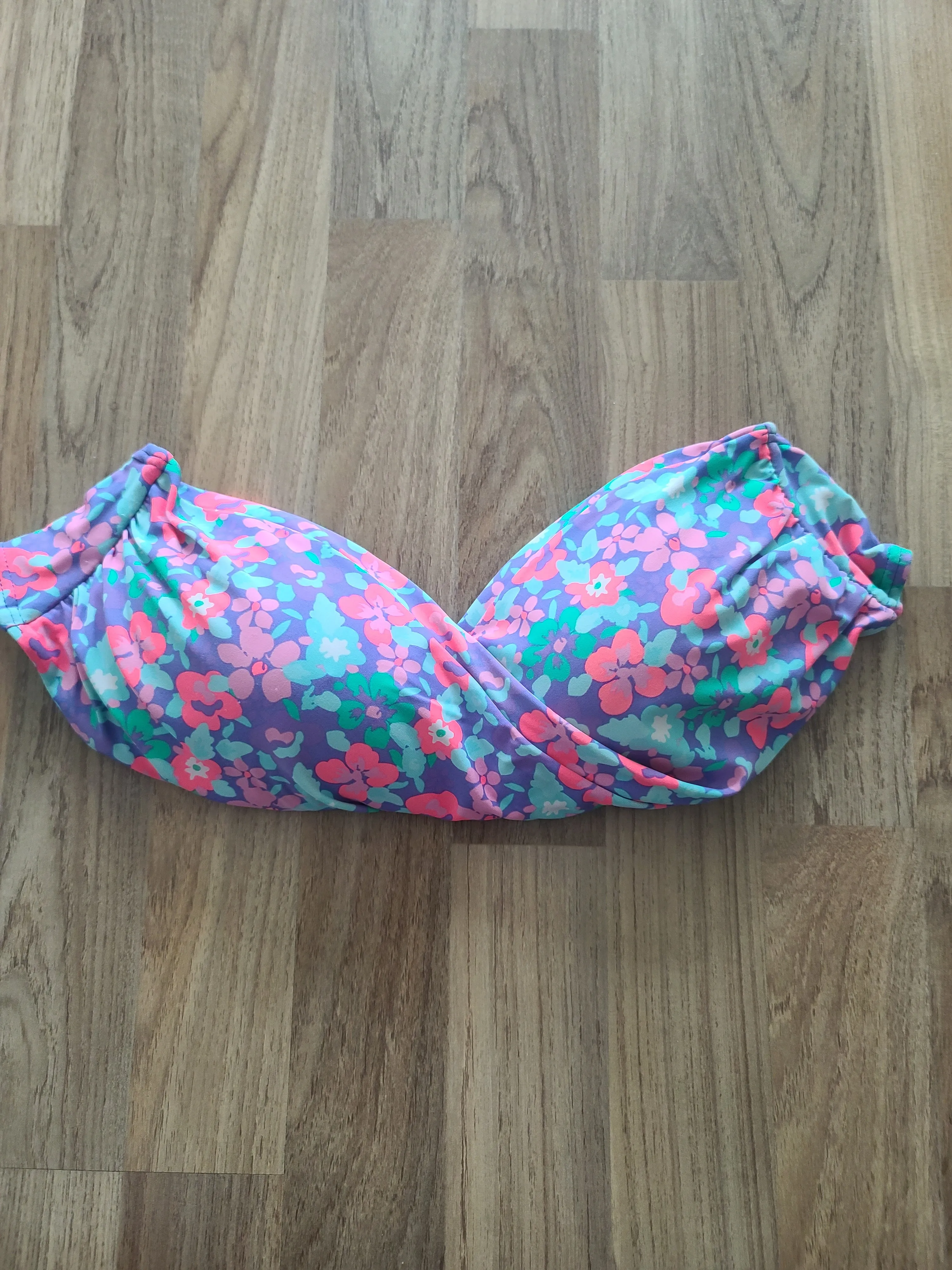 EUC. Super cute print, says size L but fits like an M, and for cup size C. Back can be adjusted to make it smaller/bigger.