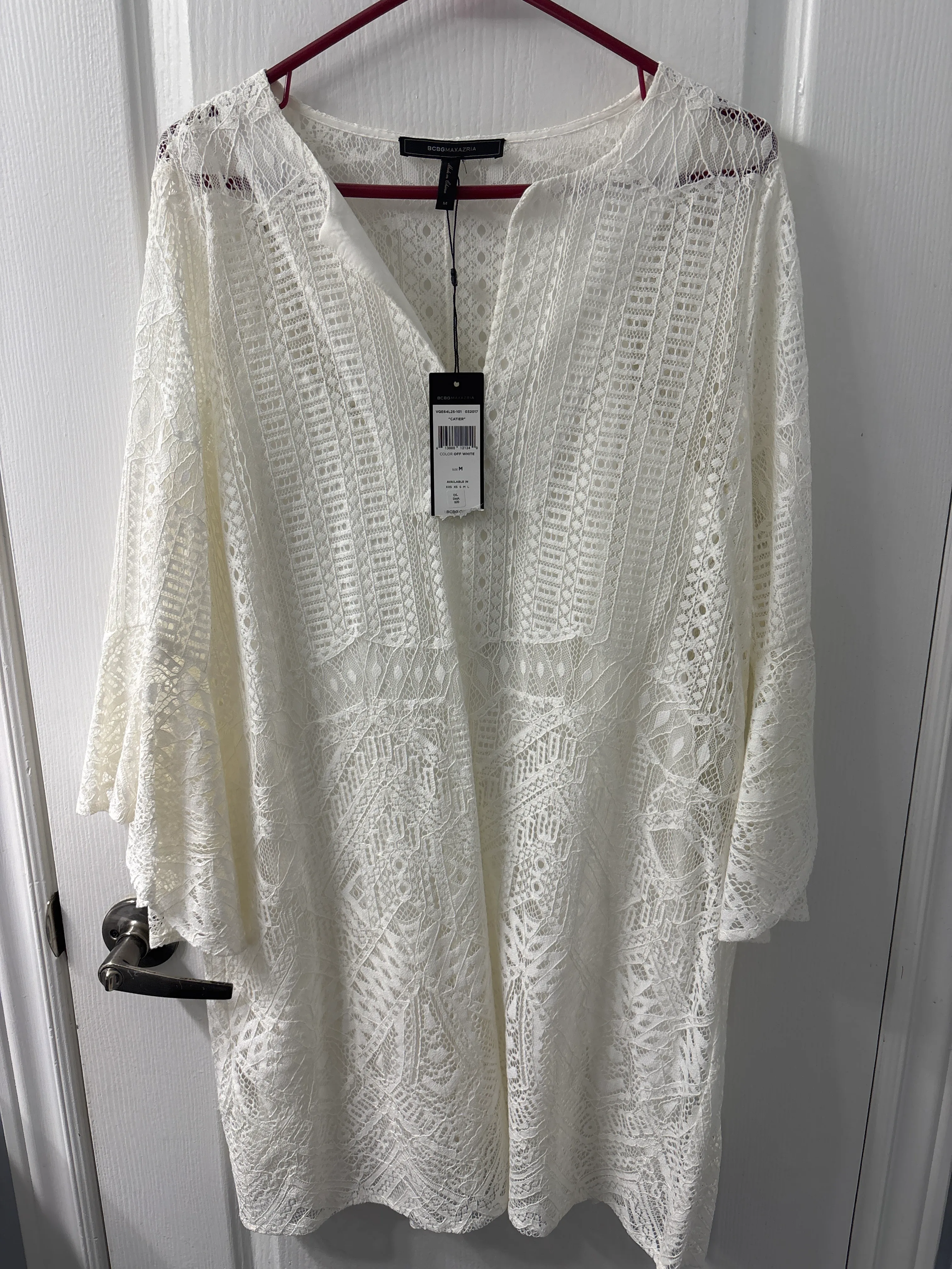 Selling a BCBGMAXAZRIA 'Catier' lace tunic in size medium. It's a beautiful off-white colour and would be a great addition to your wardrobe!