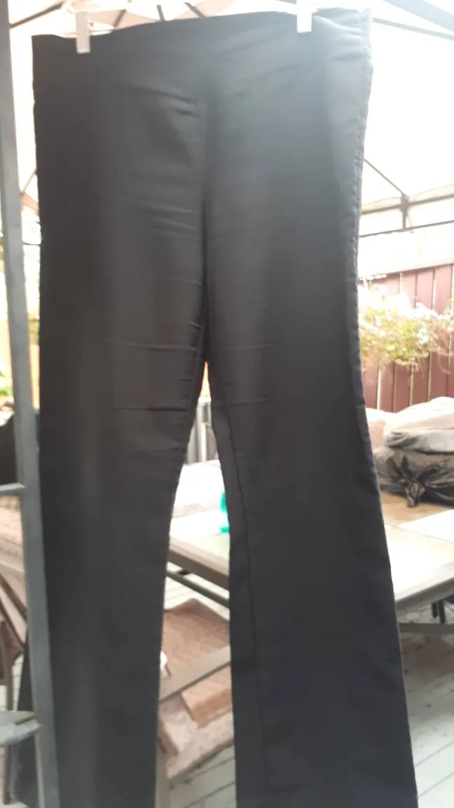 New Woman Design black office pants, wore them a few times about a year or two ago. No buttom, simple slide up pants. Front is cute, hopefully the picture shows well. Not looking for much!