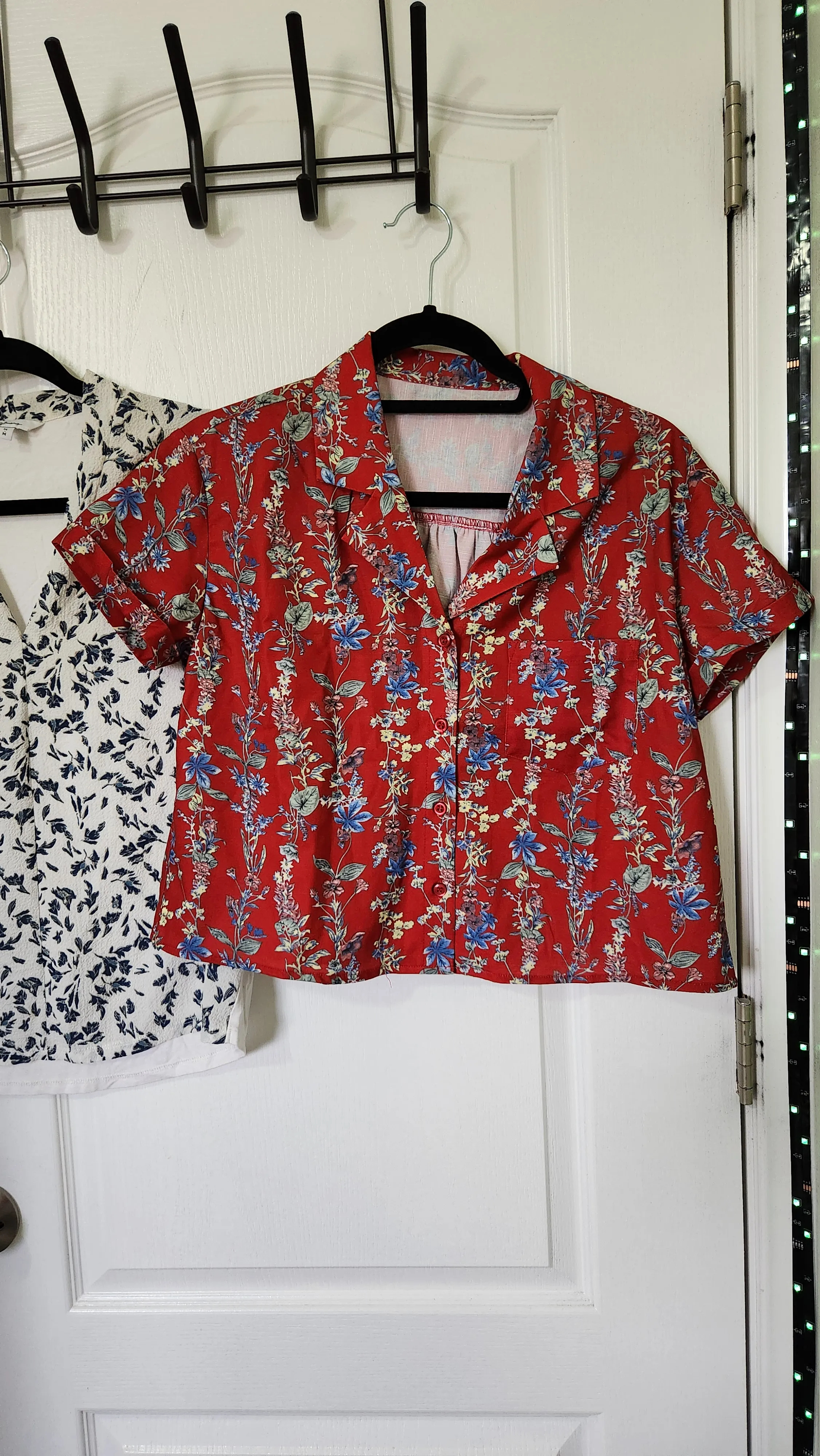 fits size large. Red floral blousw- New Super Mario and Disney used
