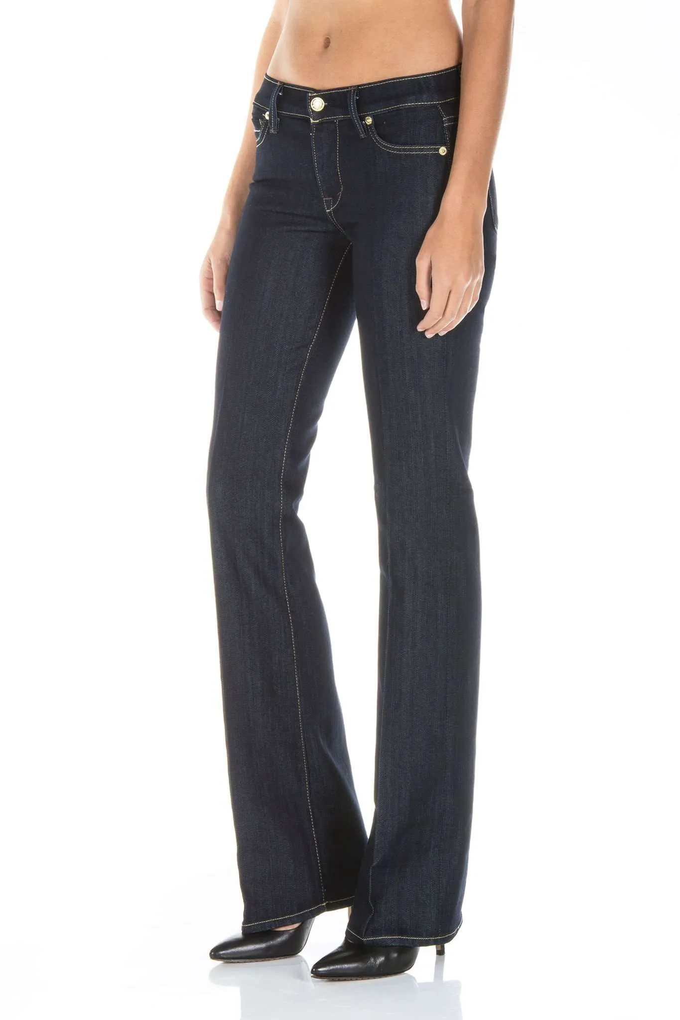 The Belladonna is a mid rise jean that sits high on the hips. Fitted thigh and knee. Classic bootcut sweep. Flattering fit for all body types. Handcrafted in Los Angeles. Sizing up is recommended.