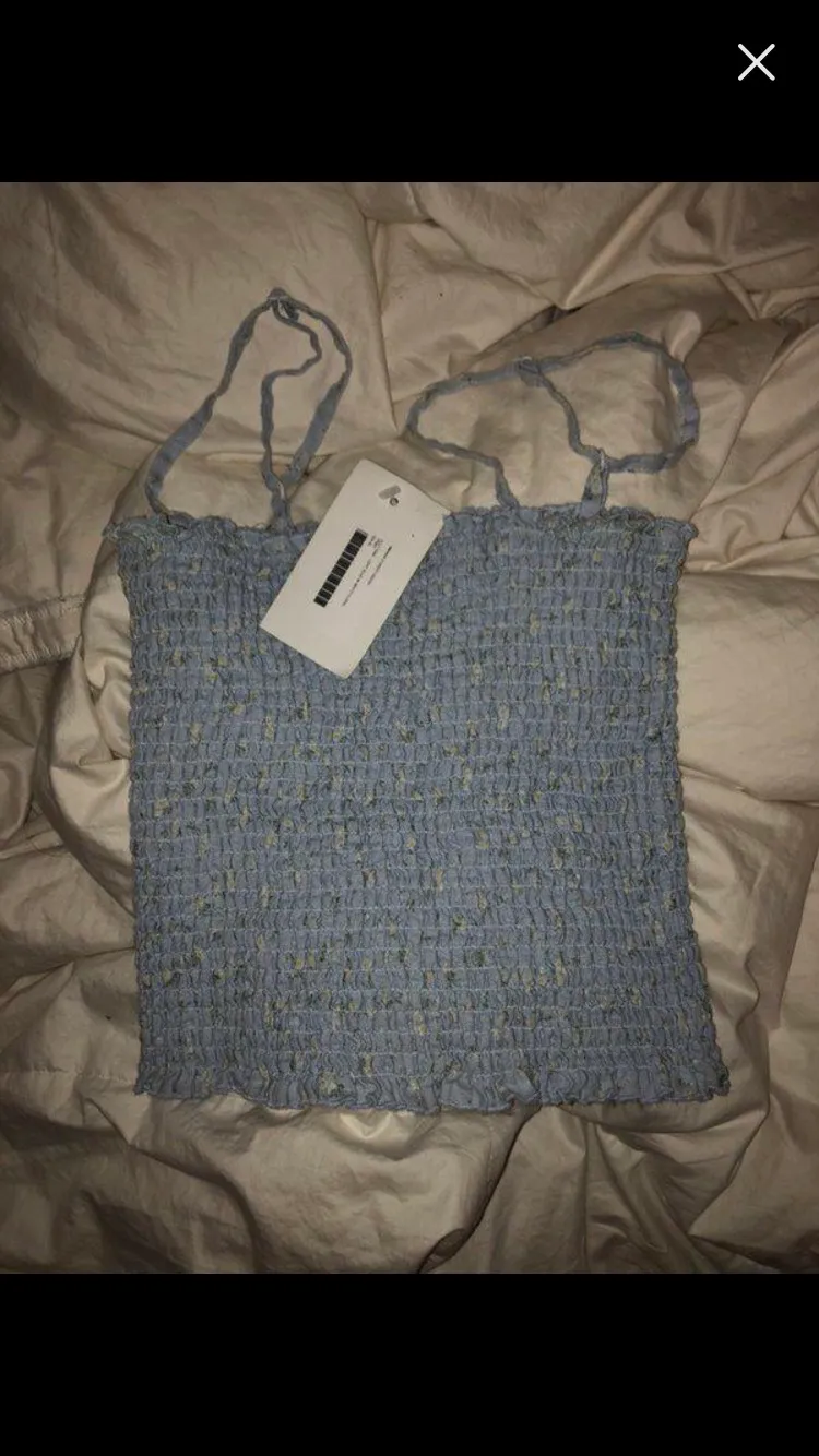 BNWT Brandy Melville Scrunched Elasticy Tank Top Baby Blue With Flowers