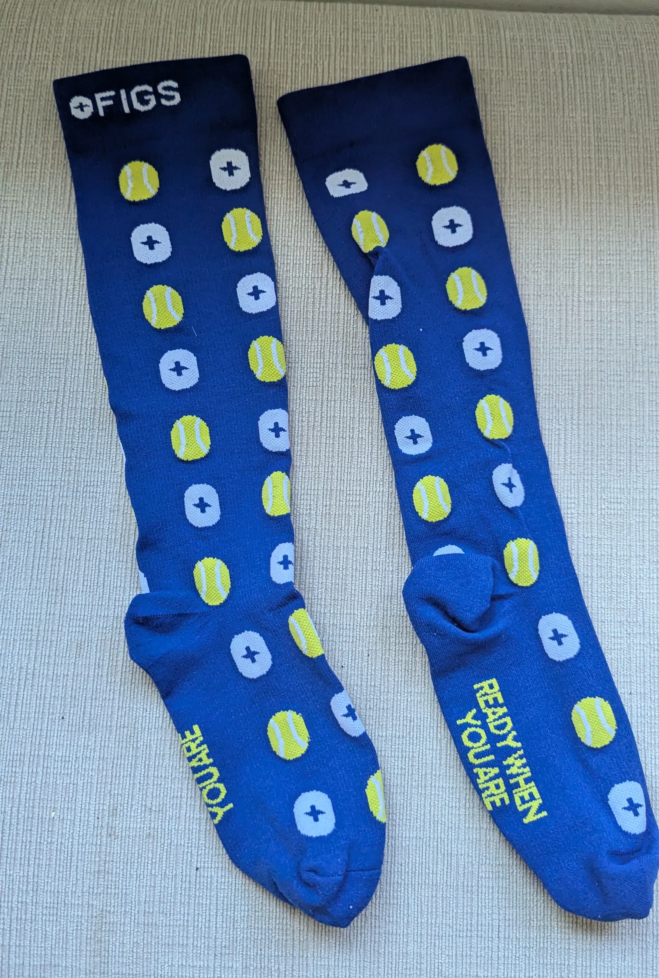 Brand New FIGS Compression Socks - Blue Tennis Pattern