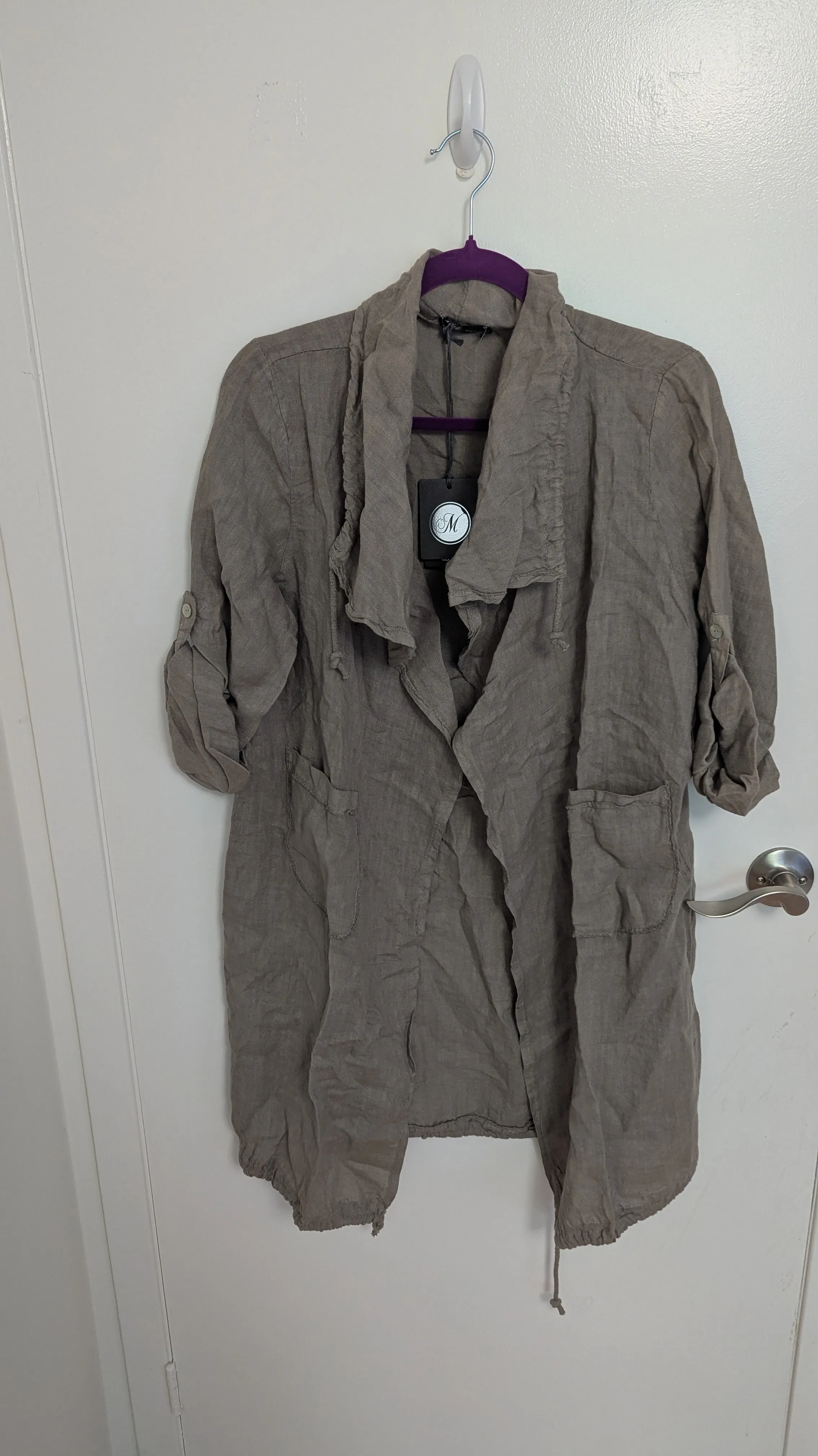 Brand New M-Made in Italy Taupe Linen Shirt - Size M