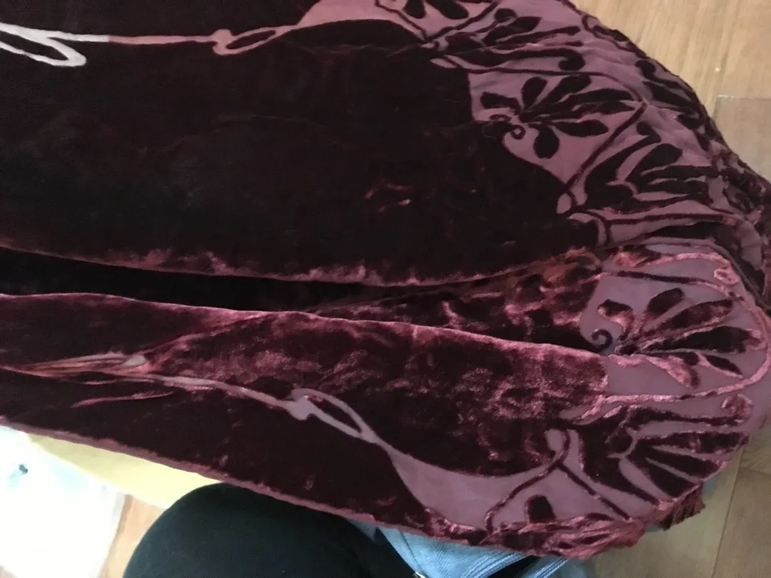 Soft velvety scarf in a lovely burgundy--just not my colour! Has a gorgeous burnt out patter at both ends. ISO anything from my list