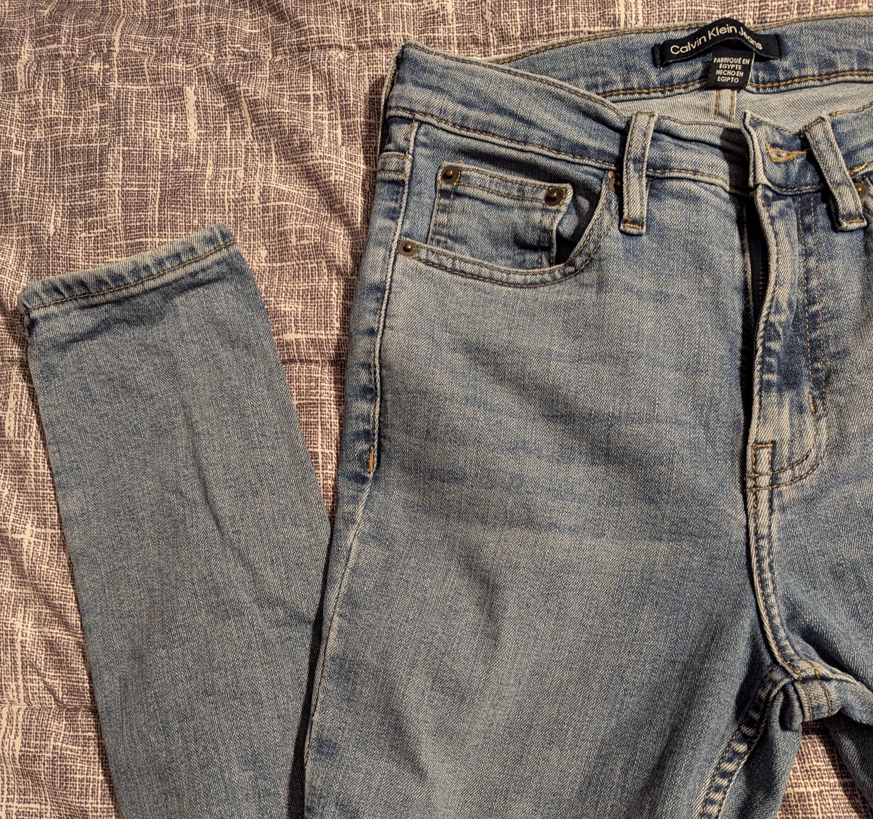 Size 26, light wash. High waisted. Worn a handful of times, very good condition. See cute detailing on back pockets!