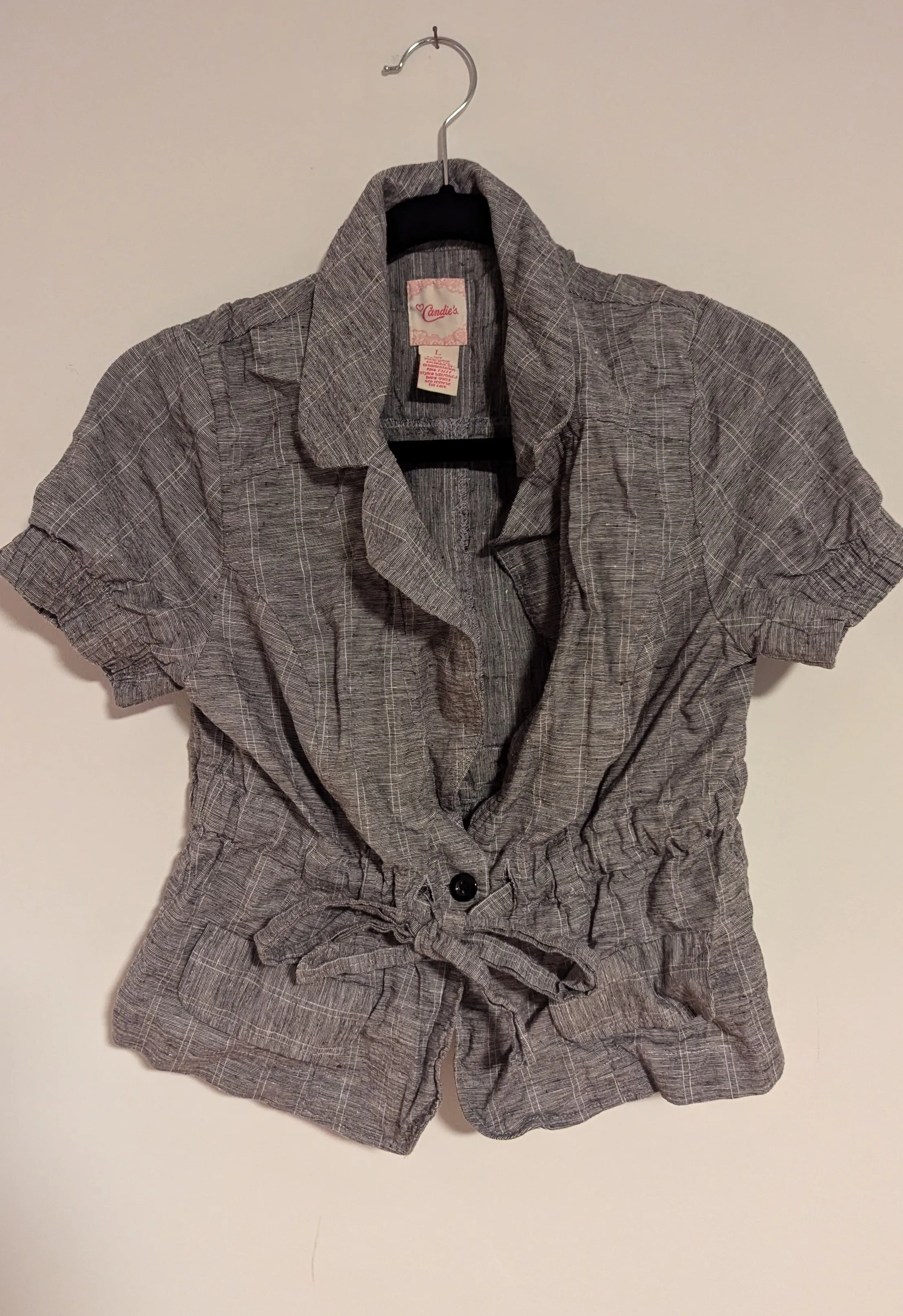Candie's Women's Grey Plaid Short Sleeve Blouse Size Large