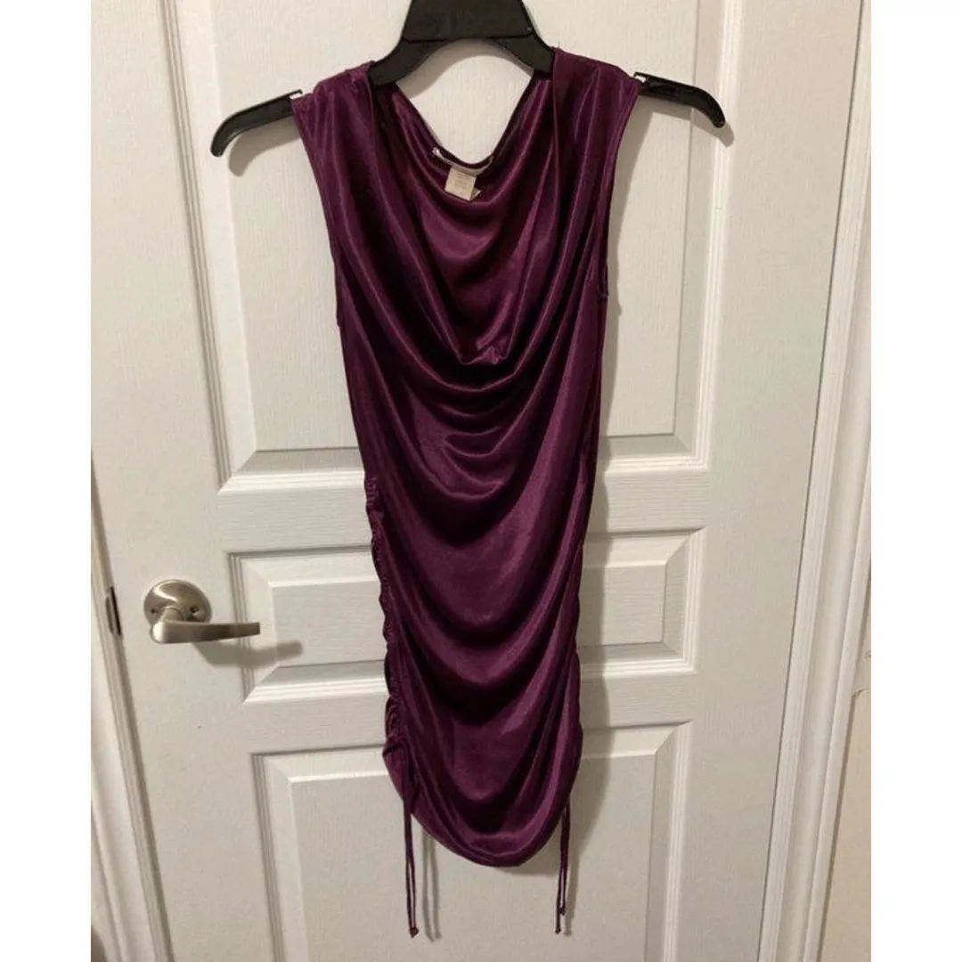 Beautiful satin purple vintage blouse with adjustable ruched sides to make it super flattering on your body and cowl neckline.