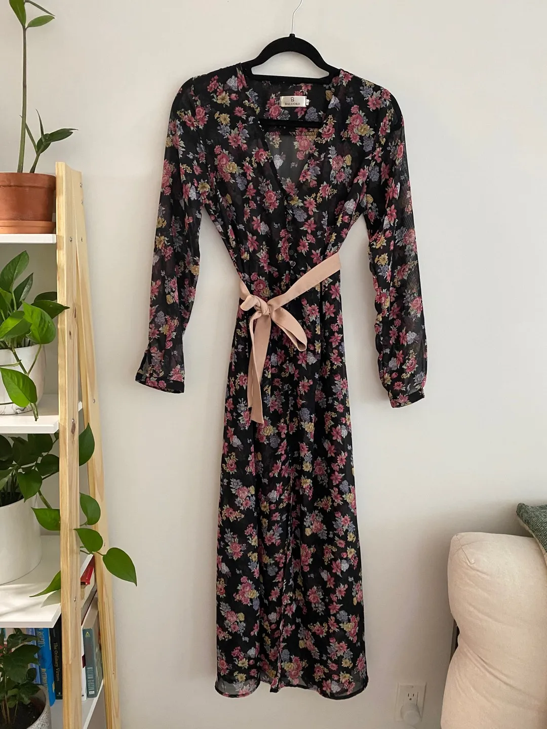Button closure. Never been worn. Tag says L but I’d say medium/6. Sash not included.