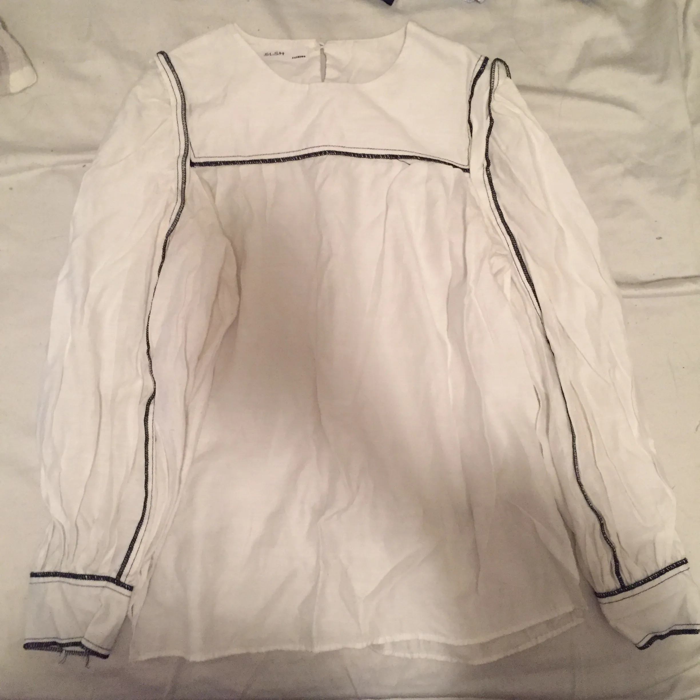 Good condition. A Classic white top for your afternoon tea or Bristish vibes. I will wash it before giving you but it definitely needs to be ironed.