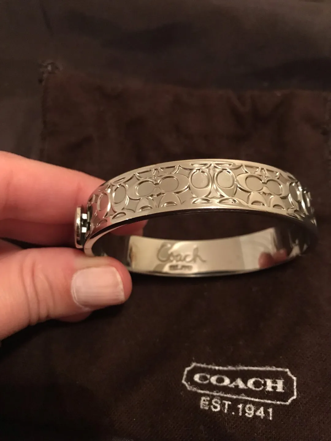 Genuine Coach bracelet only worn a handful of times. Push button clasp to open and close. Comes with original cloth bag to keep it looking shiny and new.