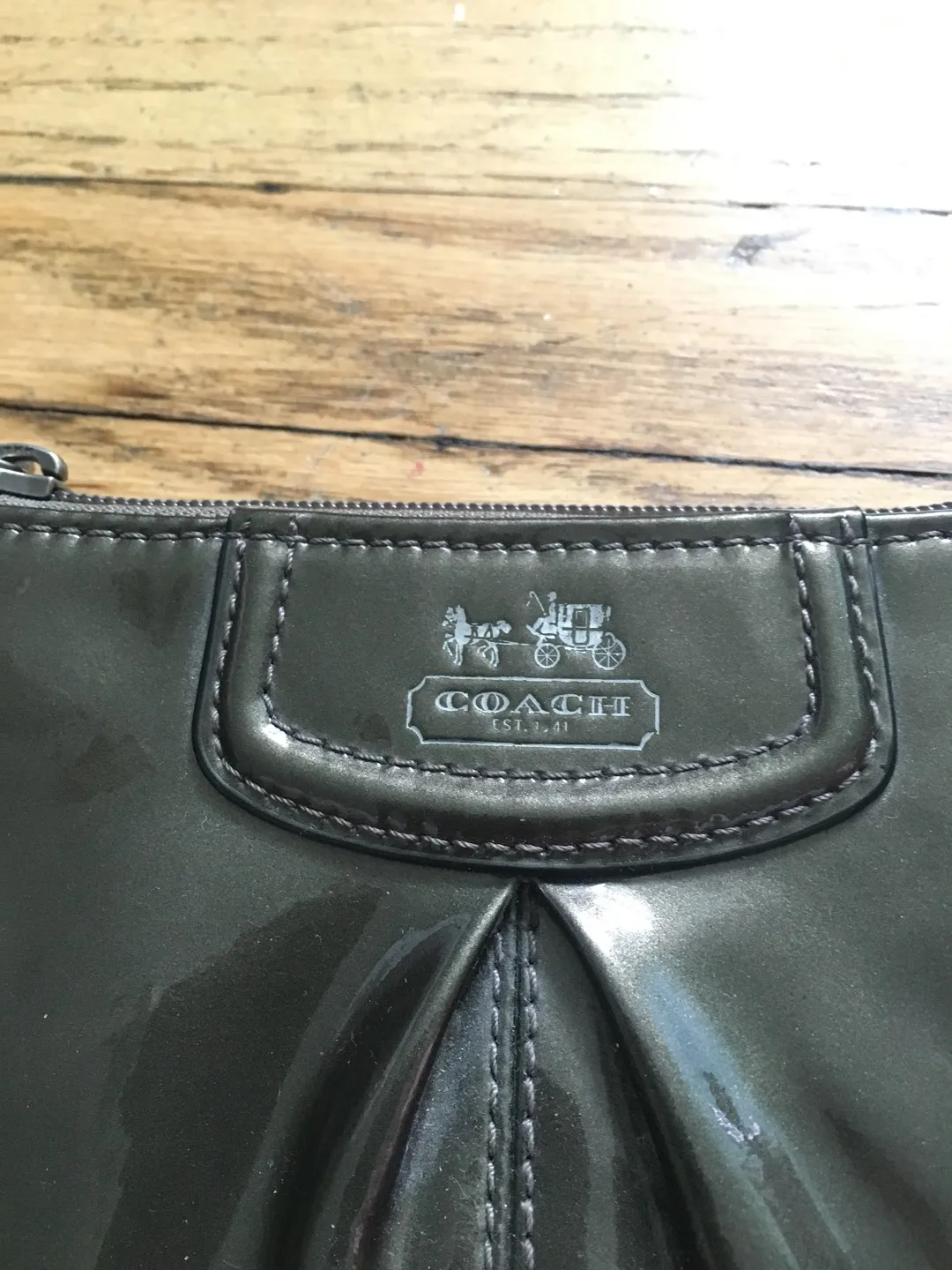 Brown shiny outside dark blue inside. In great condition.