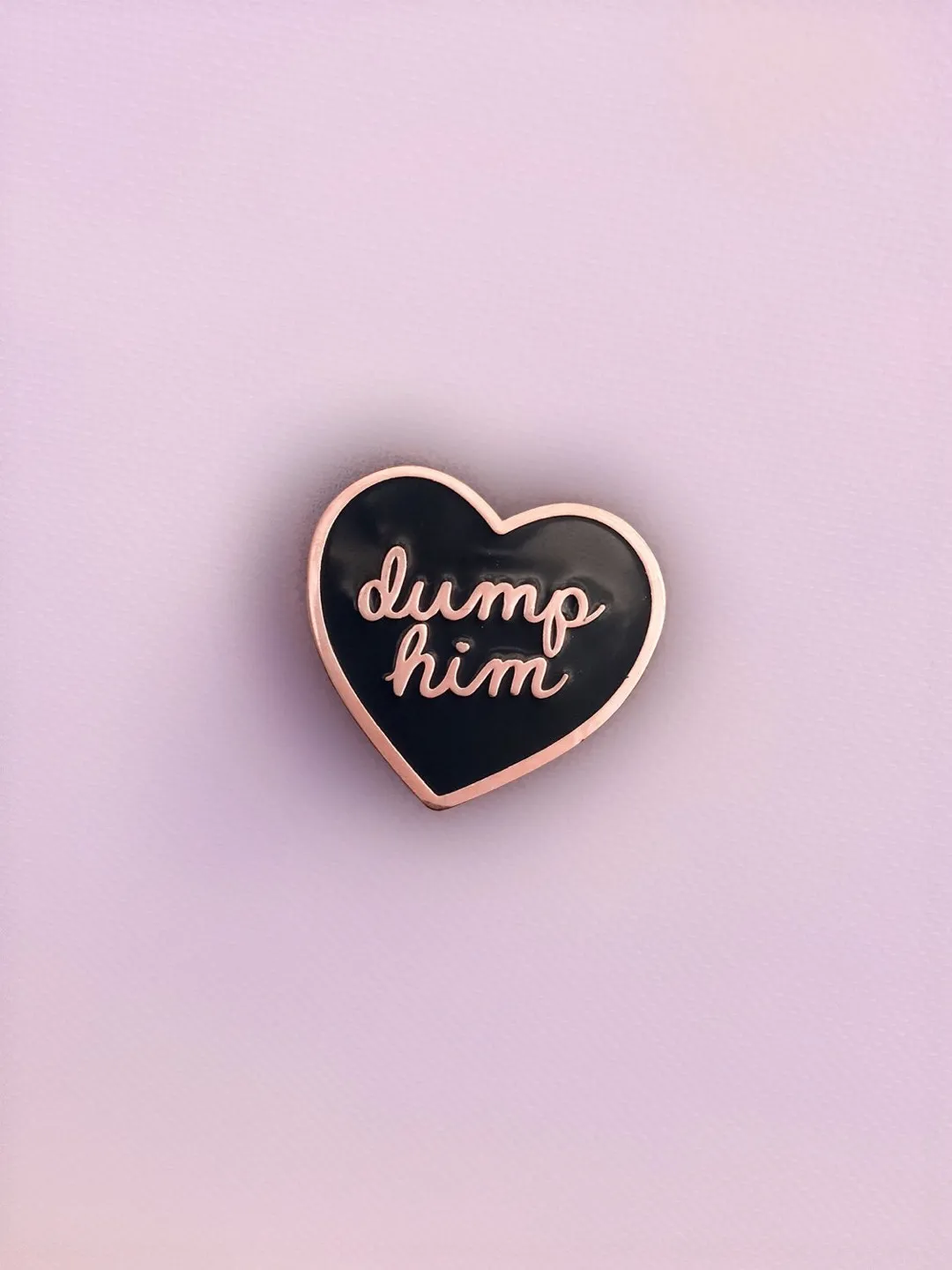 black heart and rose gold-coated hard enamel pin with rubber backing from astropuke.com