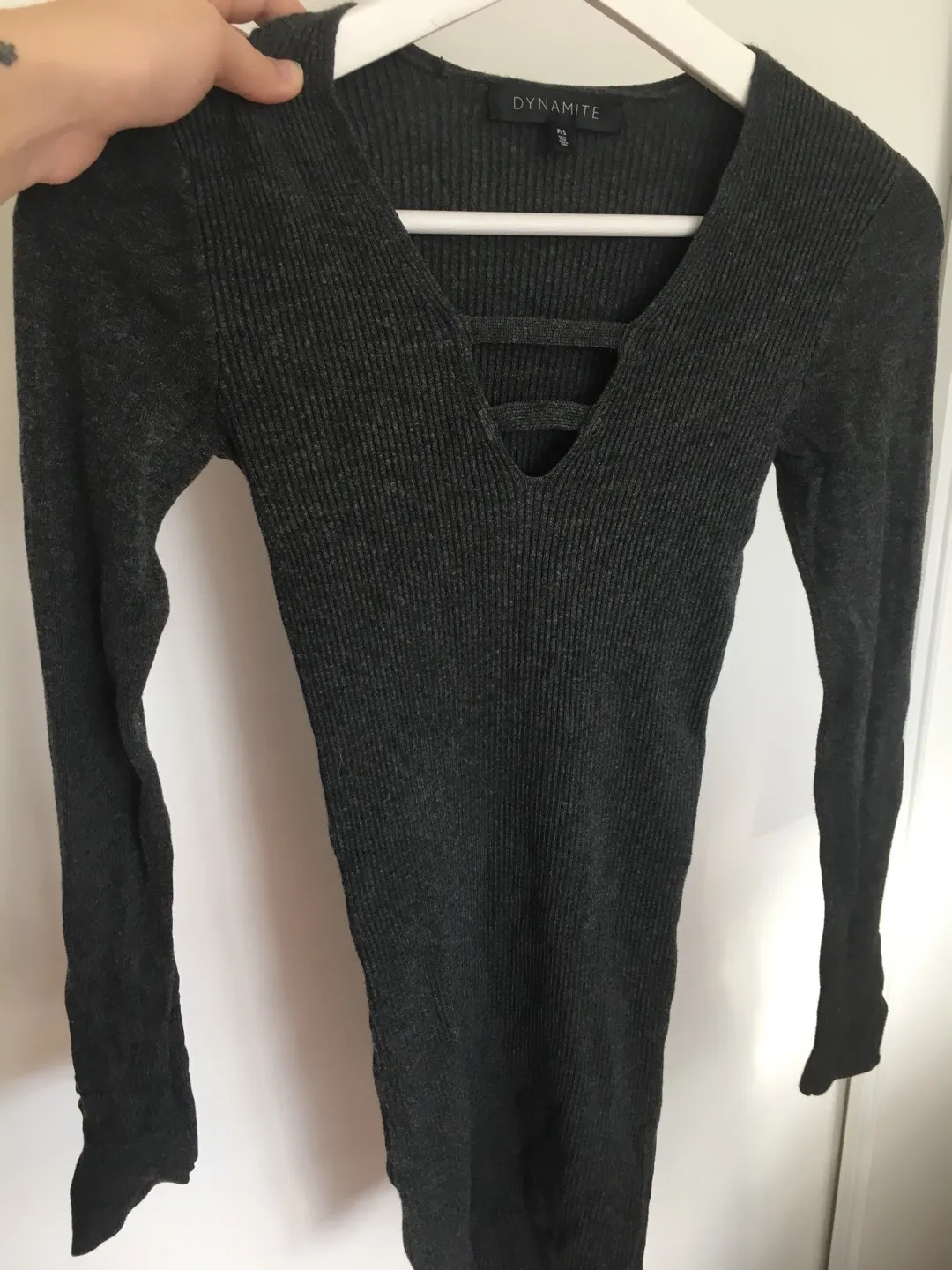 Size small. Lightly worn. Sleeve opens up at the end as pictured. Darker grey like the first picture, close up was in the sun so the grey looks much lighter!