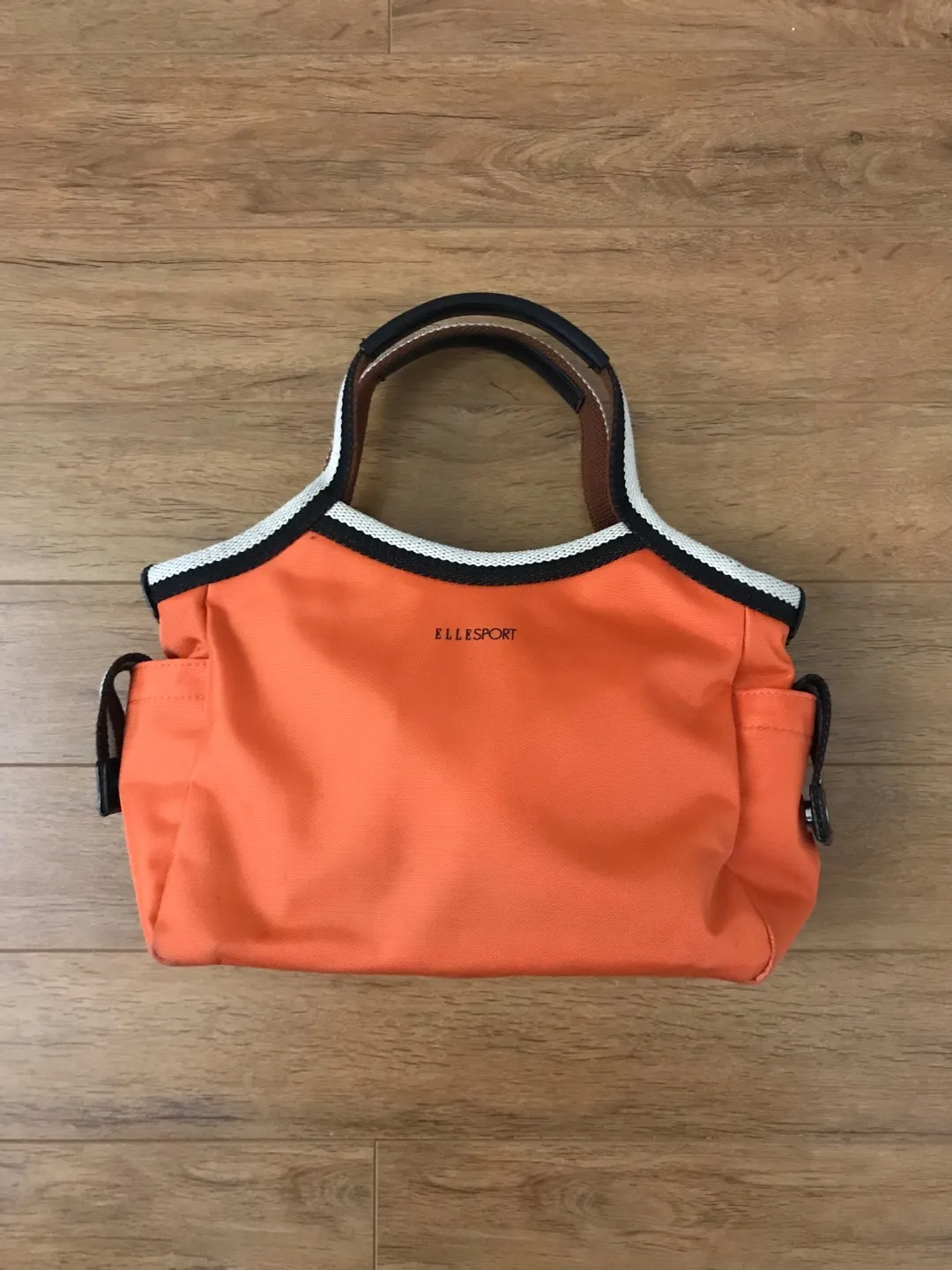 This is a sporty orange purse from Elle in good condition. I’m not sure what this material is but it’s nice and sturdy and the purse is of good quality. It’s about 30 something cm in length.